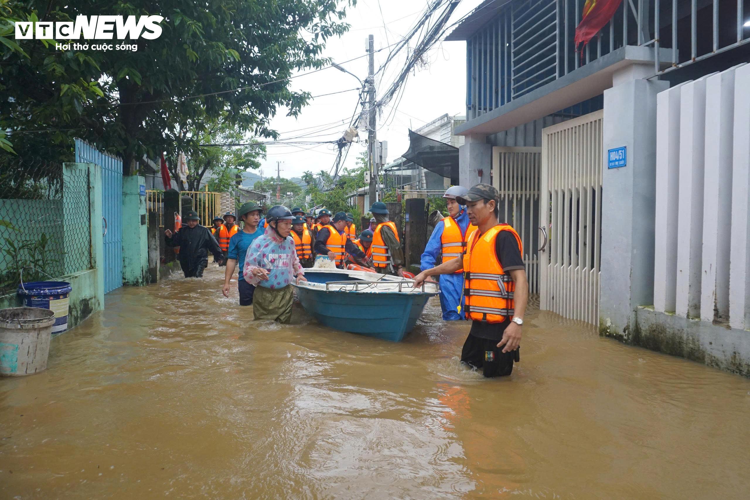 Lực lượng Công an phường Hòa Khánh, Ban chỉ huy Quân sự phường và Trung đoàn Bộ binh 971 Bộ Chỉ huy Quân sự TP Đà Nẵng đã lội vào vùng ngập sâu nhất để sơ tán người dân ra bên ngoài.