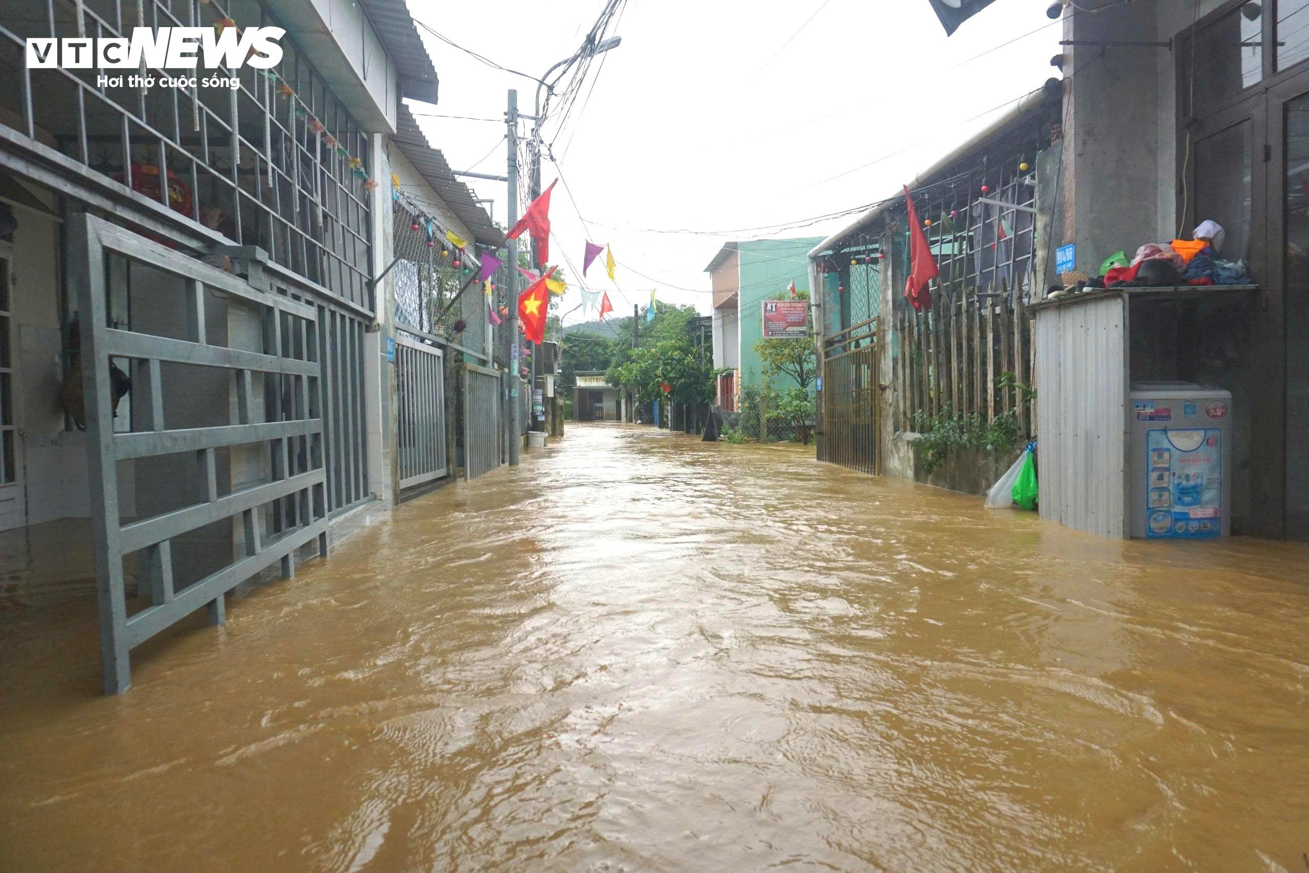 Mưa lớn kéo dài khiến các khu dân cư trên đường Mẹ Suốt, phường Hòa Khánh, TP Đà Nẵng ngập nặng.