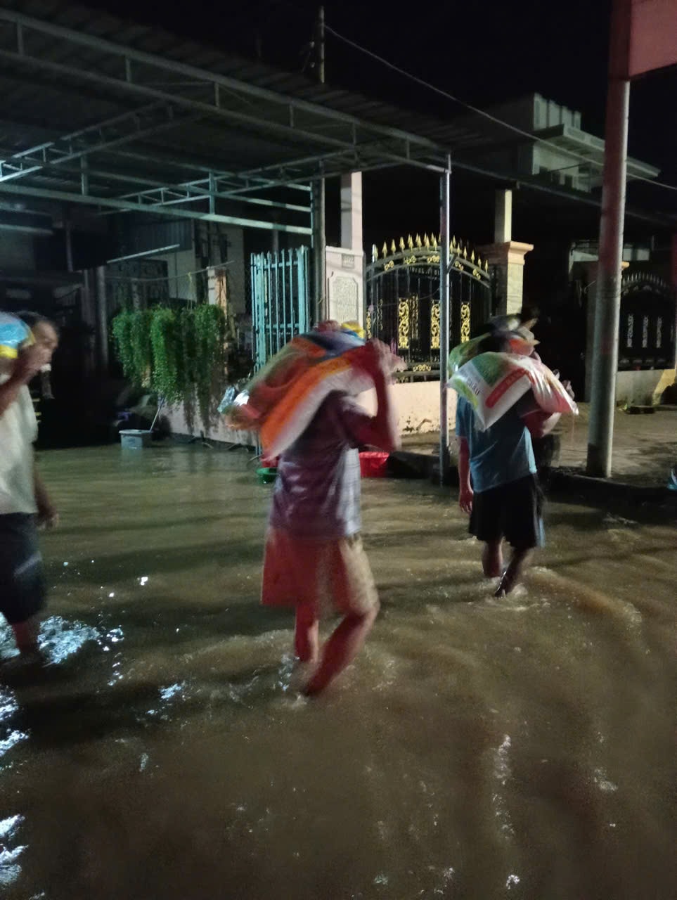 Người dân vác gạo tránh ngập