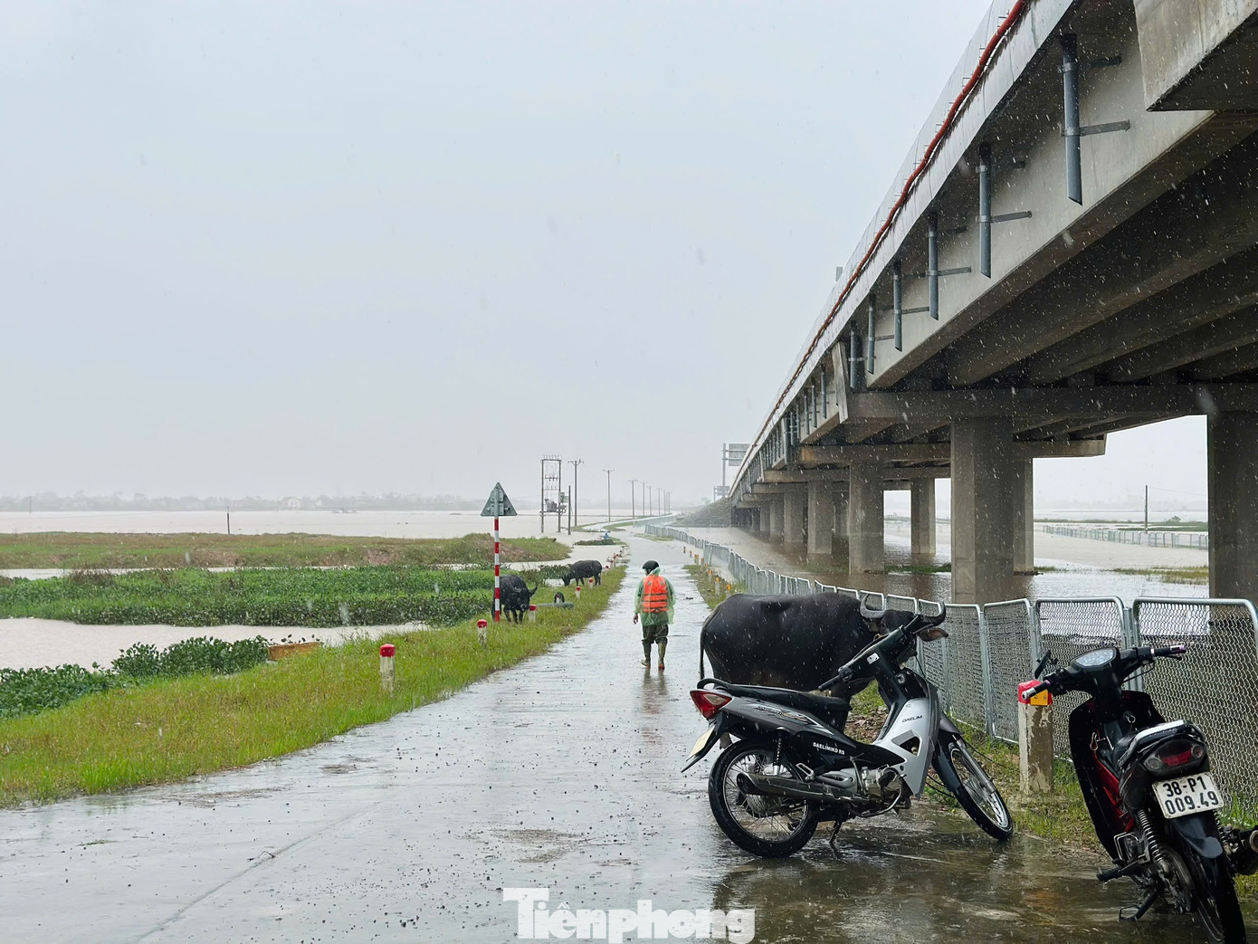 Nhiều hộ dân cũng khẩn trương đưa gia súc lên các khu vực cao ráo, đặc biệt là những bãi đất trống gần tuyến đường cao tốc, nhằm bảo đảm an toàn cho vật nuôi.
