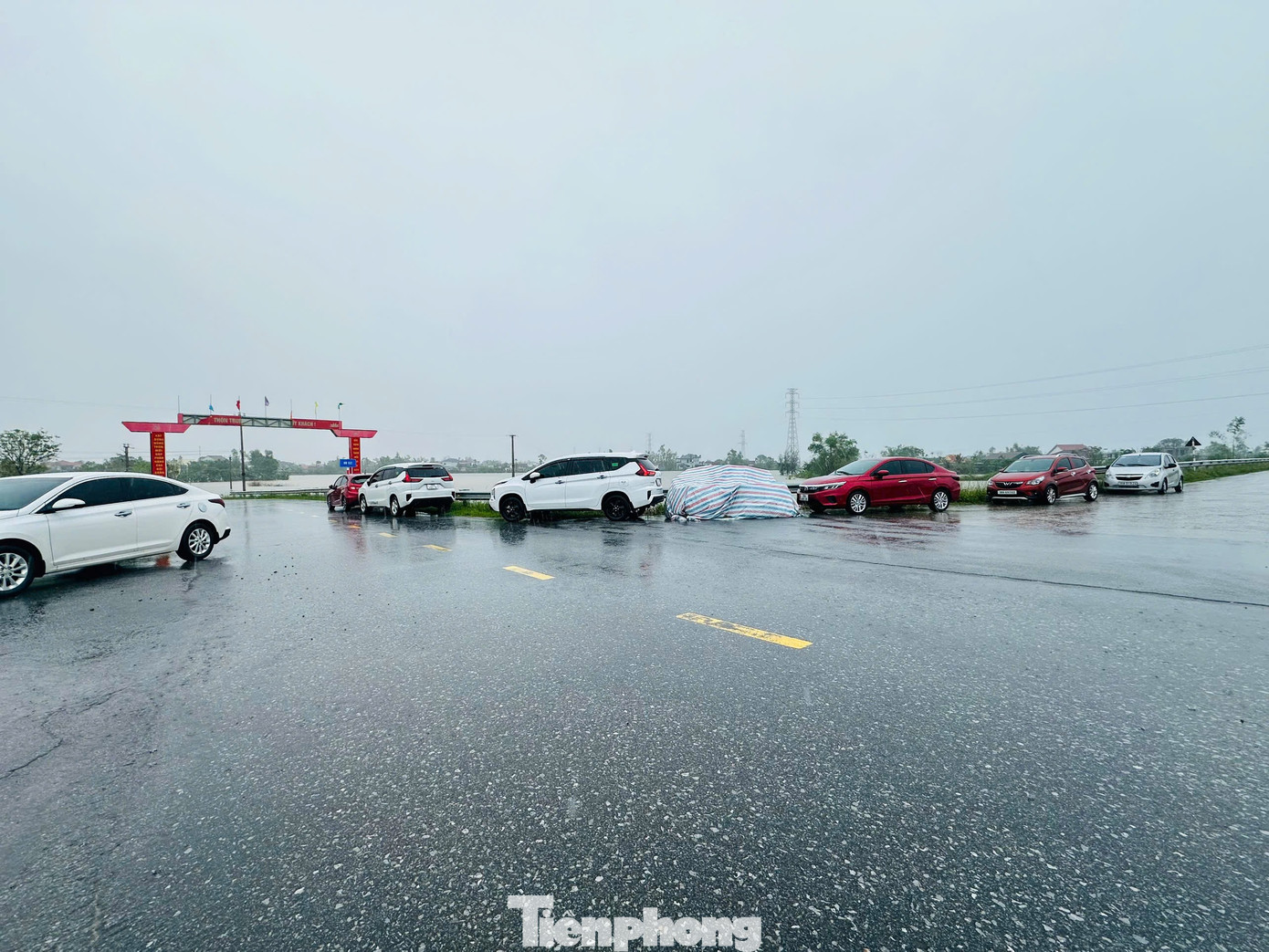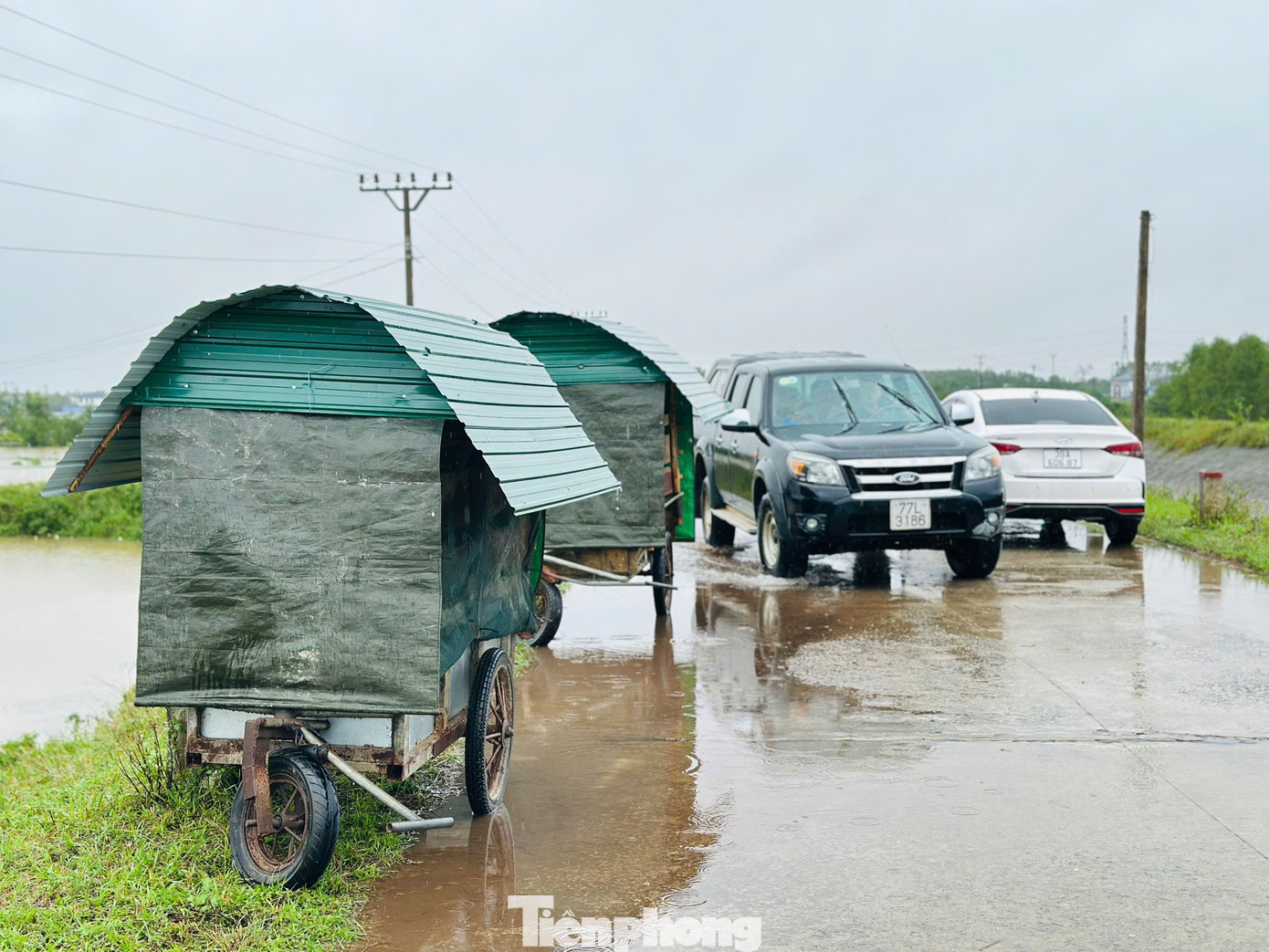 Dọc tuyến đê dẫn nước hồ Kẻ Gỗ, hàng trăm ô tô được người dân dựng dọc hai bên đường để phòng ngập khi mực nước lũ dâng lên. Nhiều máy móc, thiết bị cũng được bọc bạt, di chuyển lên khu vực cao.