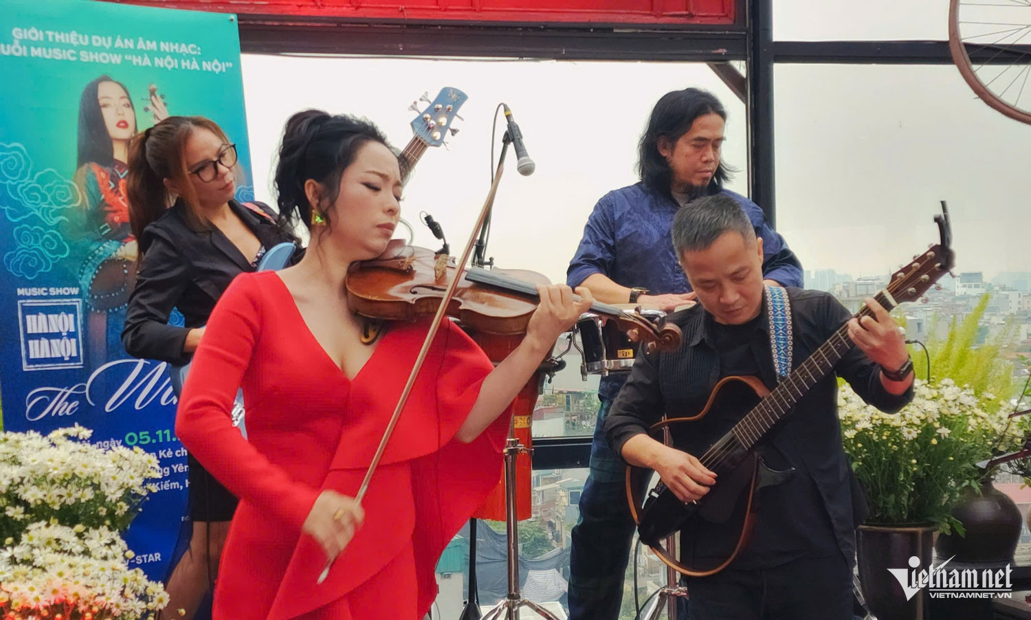 Nghệ sĩ violin Trịnh Minh Hiền biểu diễn tại buổi gặp gỡ báo chí giới thiệu dự án.