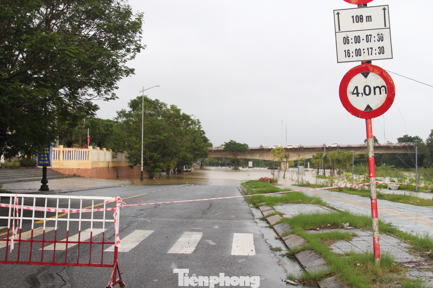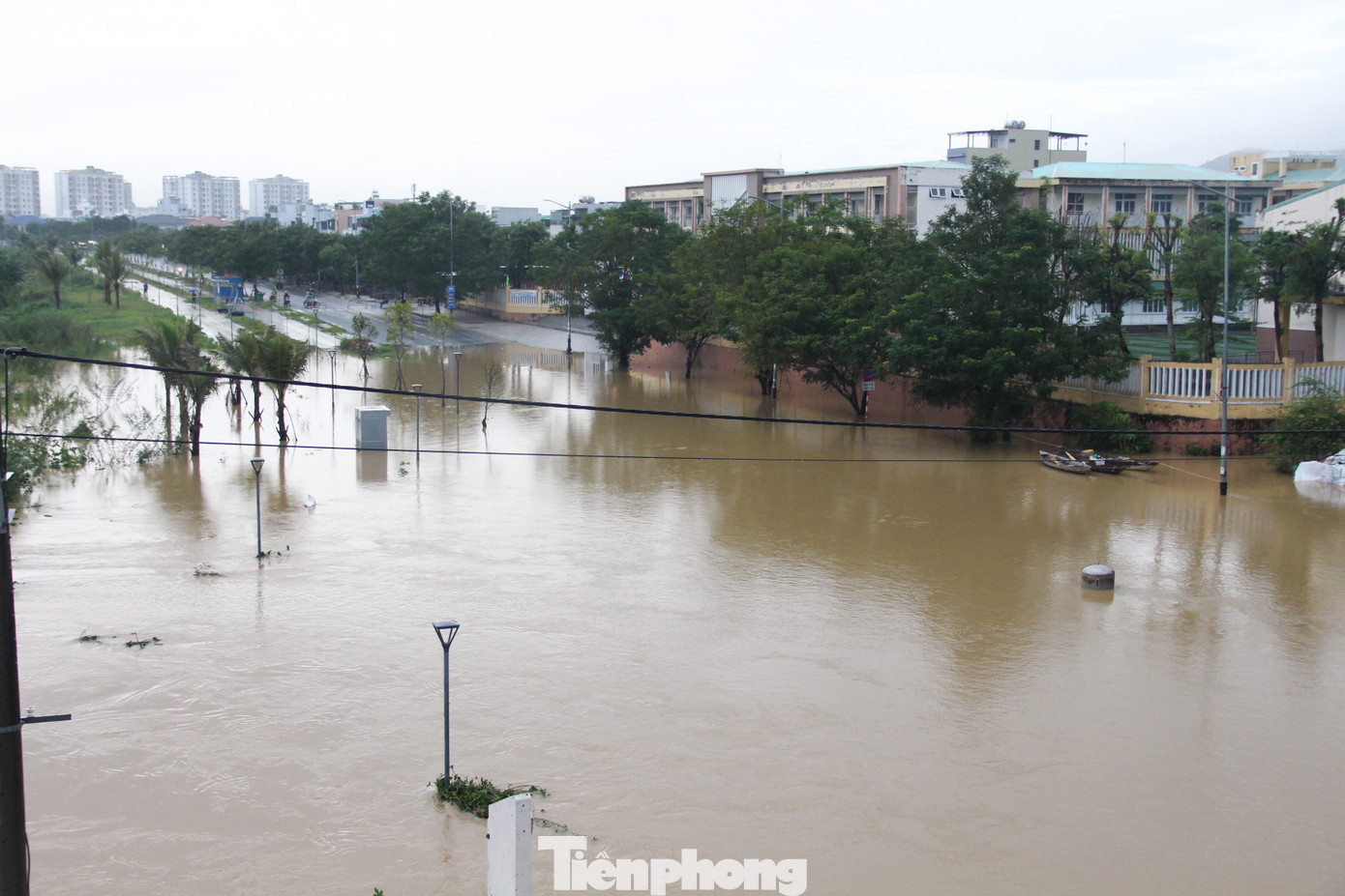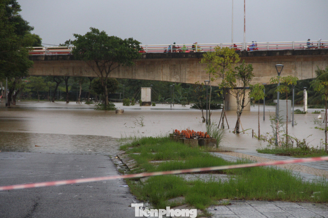 Đường Thăng Long đoạn dưới chân cầu Cẩm Lệ cũng ngập sâu do nước sông tràn lên bờ. Từ sáng sớm nay, UBND phường Cẩm Lệ đã cấm người dân lưu thông qua khu vực này để đề phòng nguy hiểm.