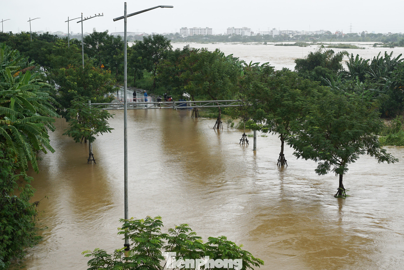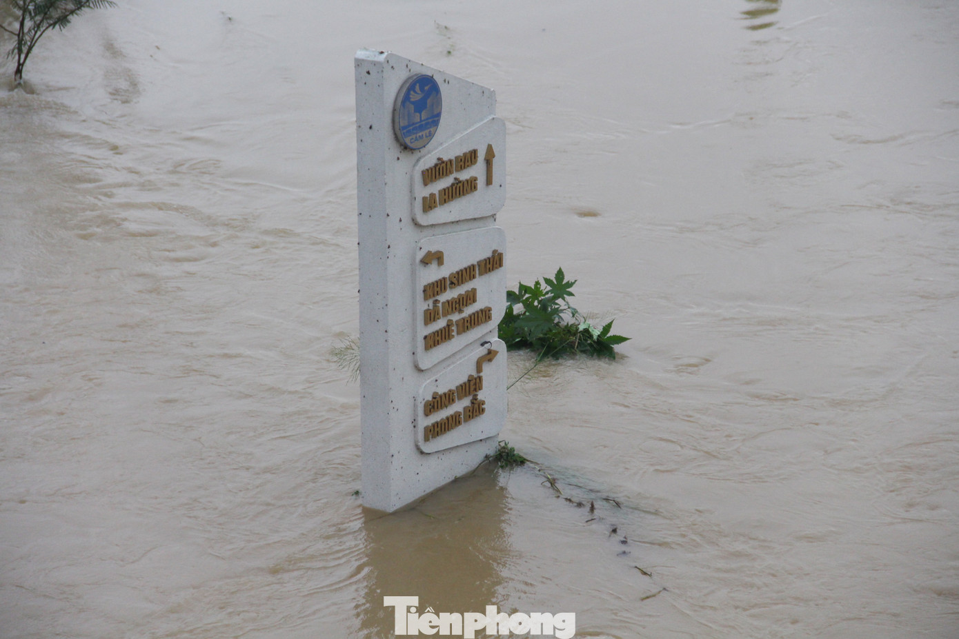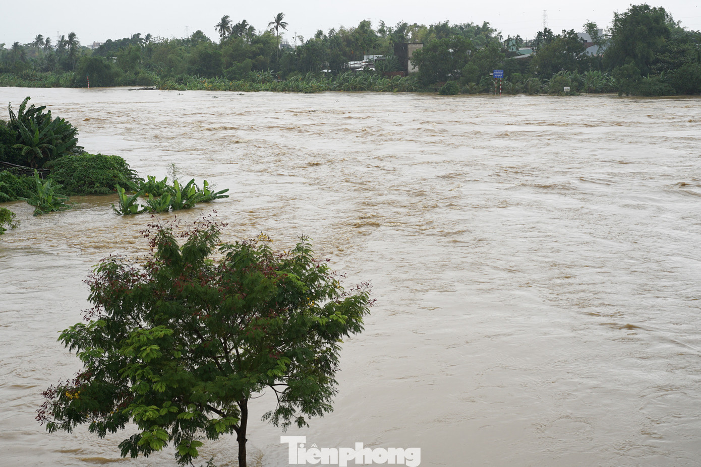 Đường Thăng Long đoạn dưới chân cầu Cẩm Lệ cũng ngập sâu do nước sông tràn lên bờ. Từ sáng sớm nay, UBND phường Cẩm Lệ đã cấm người dân lưu thông qua khu vực này để đề phòng nguy hiểm.