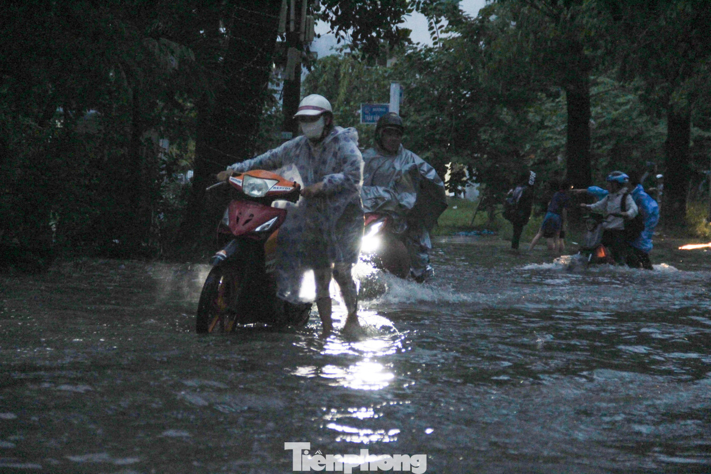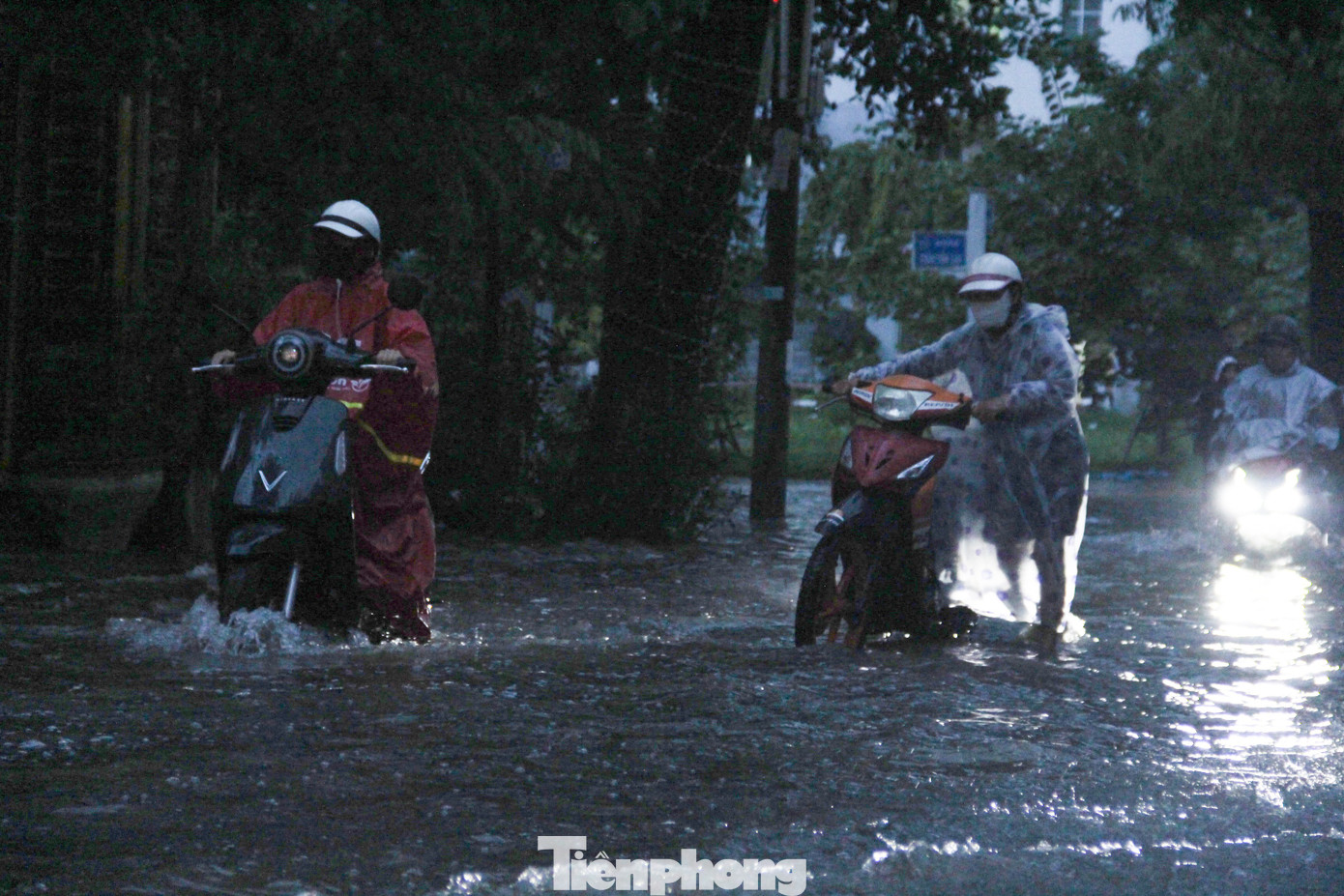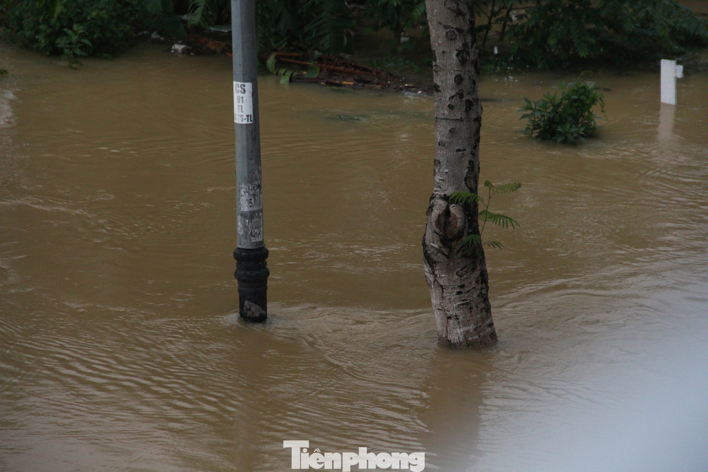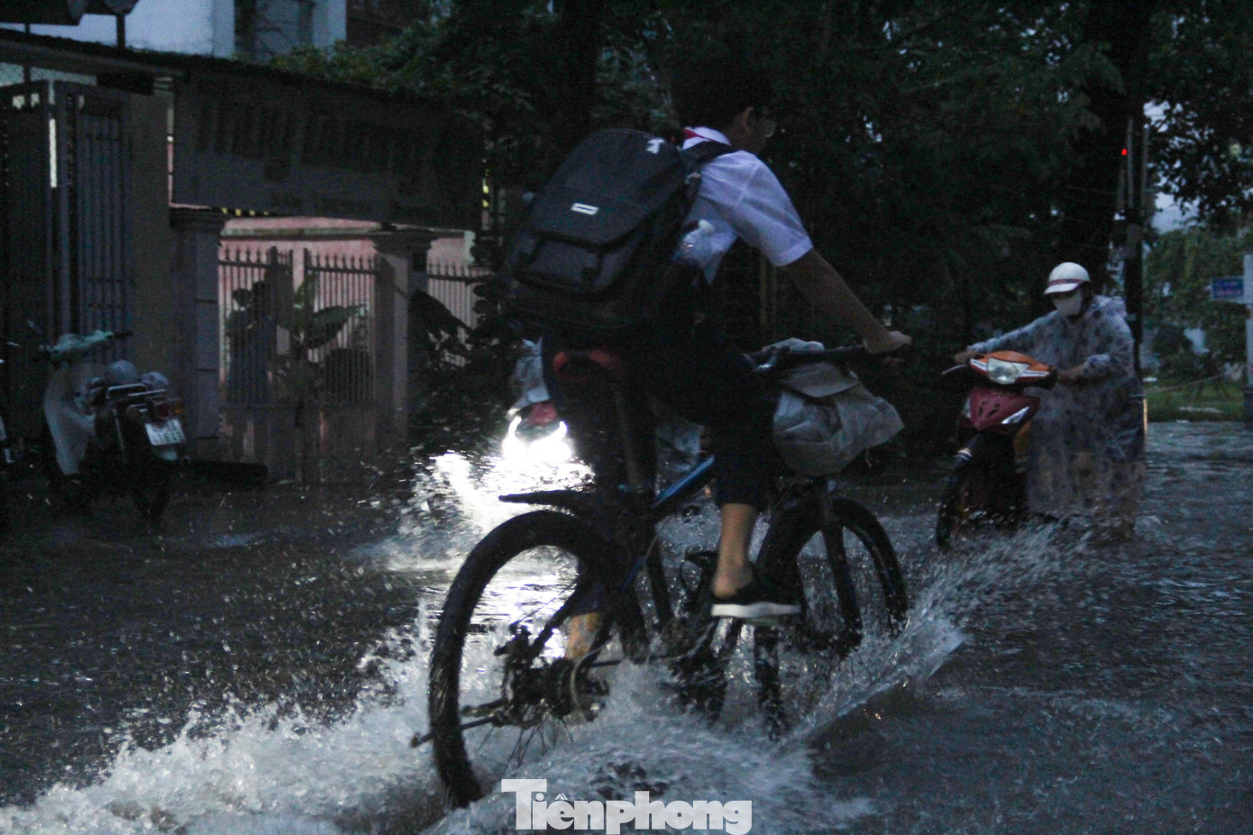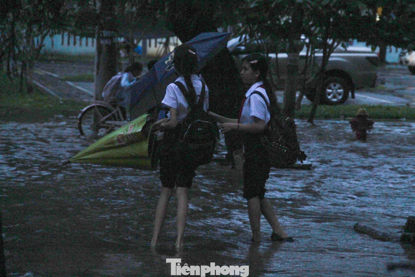 Cũng do mực nước sông dâng cao, nước từ khu vực hồ điều tiết tràn ngược vào đường Trần Quý Hai - Trần Văn Lan (phường Cẩm Lệ) gây ngập lụt cục bộ vào giờ tan tầm. Người dân và học sinh lội bì bõm trong nước ngập để về nhà.