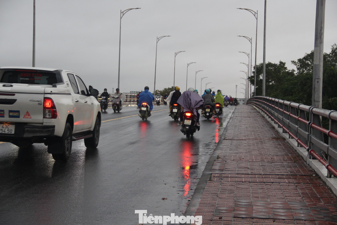 Người dân lưu thông trên tuyến đường Ông Ích Đường (phường Cẩm Lệ) cũng được lực lượng chức năng điều hướng đi thẳng lên cầu thay vì được rẽ vào kiệt 200 Ông Ích Đường để tránh các tuyến đường ngập lụt.