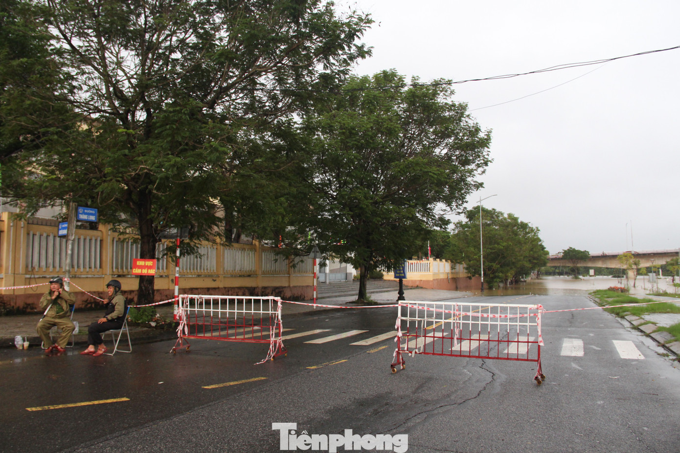 Tuyến đường Thăng Long ven sông Cẩm Lệ ngập sâu ở khu vực dưới gầm Cầu Đỏ. Đây là khu vực thường xuyên bị ngập khi nước lũ từ thượng nguồn đổ về. Từ nhiều ngày nay, lực lượng chức năng đã chốt chặn, giăng dây cảnh báo người dân không lưu thông.