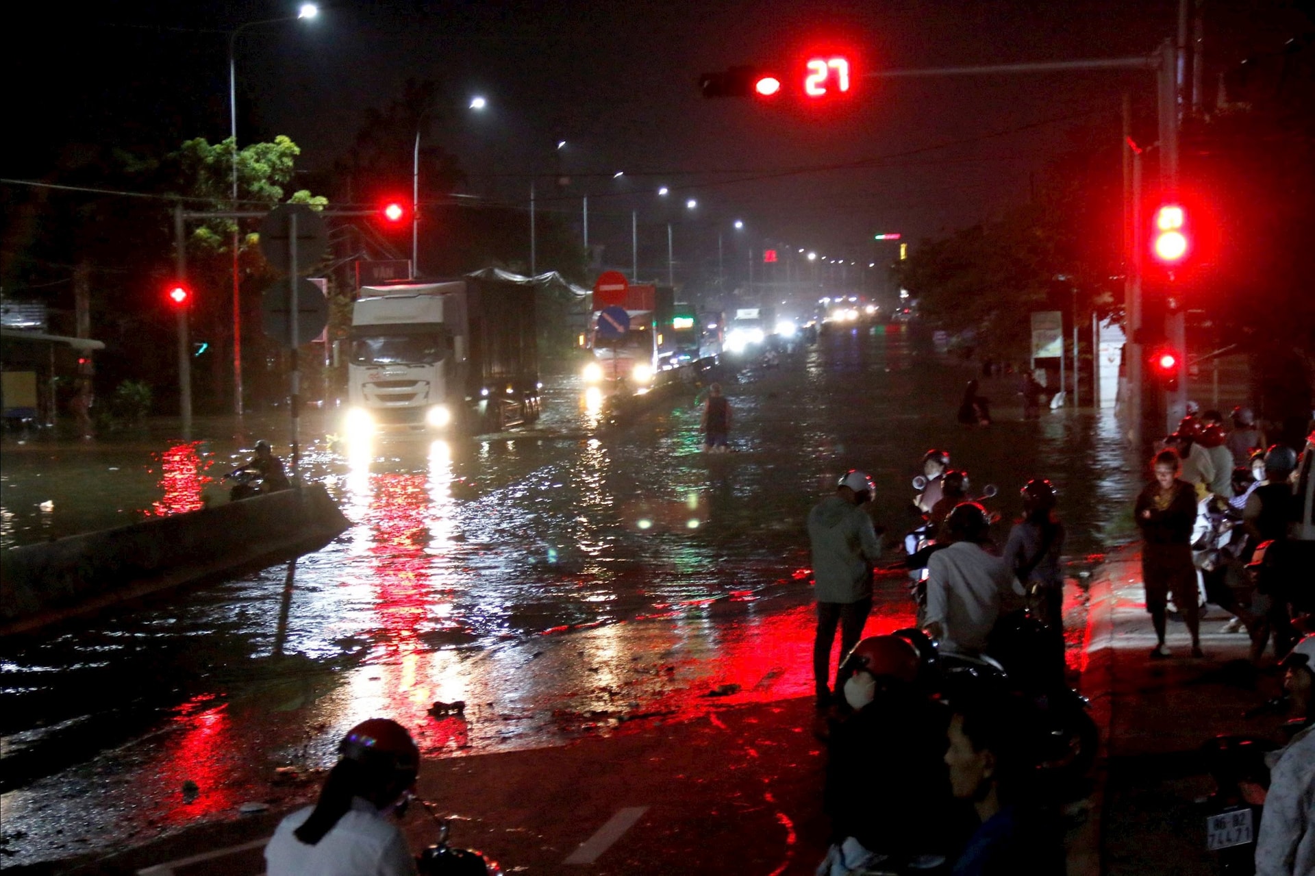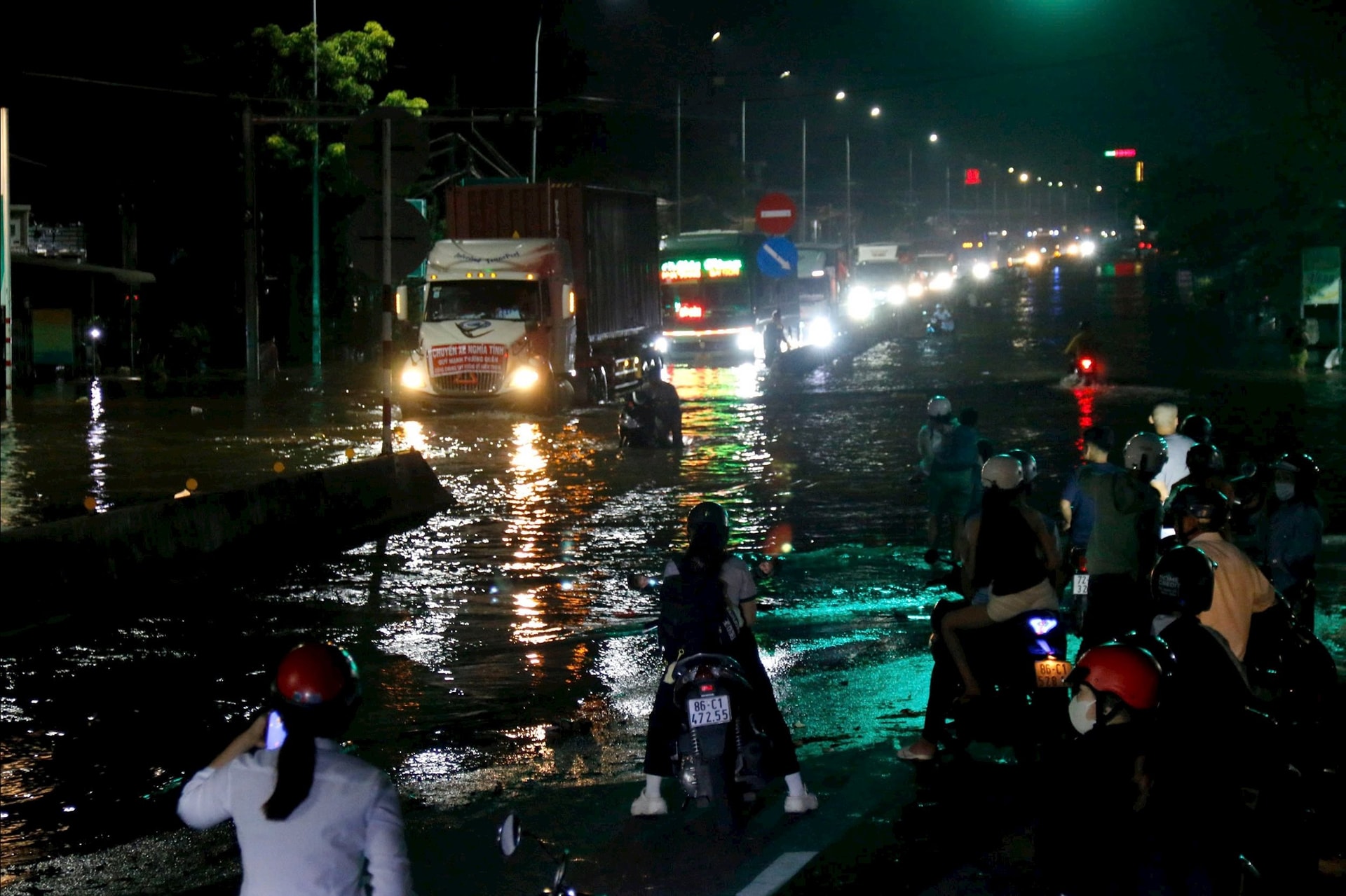 Theo ghi nhận của phóng viên, đoạn ngập kéo dài khoảng 500m. Mực nước ngập có nơi gần hết bánh xe tải. Các xe ôtô gầm cao, xe tải, xe đầu kéo có thể di chuyển chậm qua khu vực ngập. Riêng xe máy không thể di chuyển qua. Nhiều xe máy cố gắng chạy qua đã bị tắt máy. Được biết vị trí này hồi đầu tháng 10 vừa qua cũng bị ngập sâu.