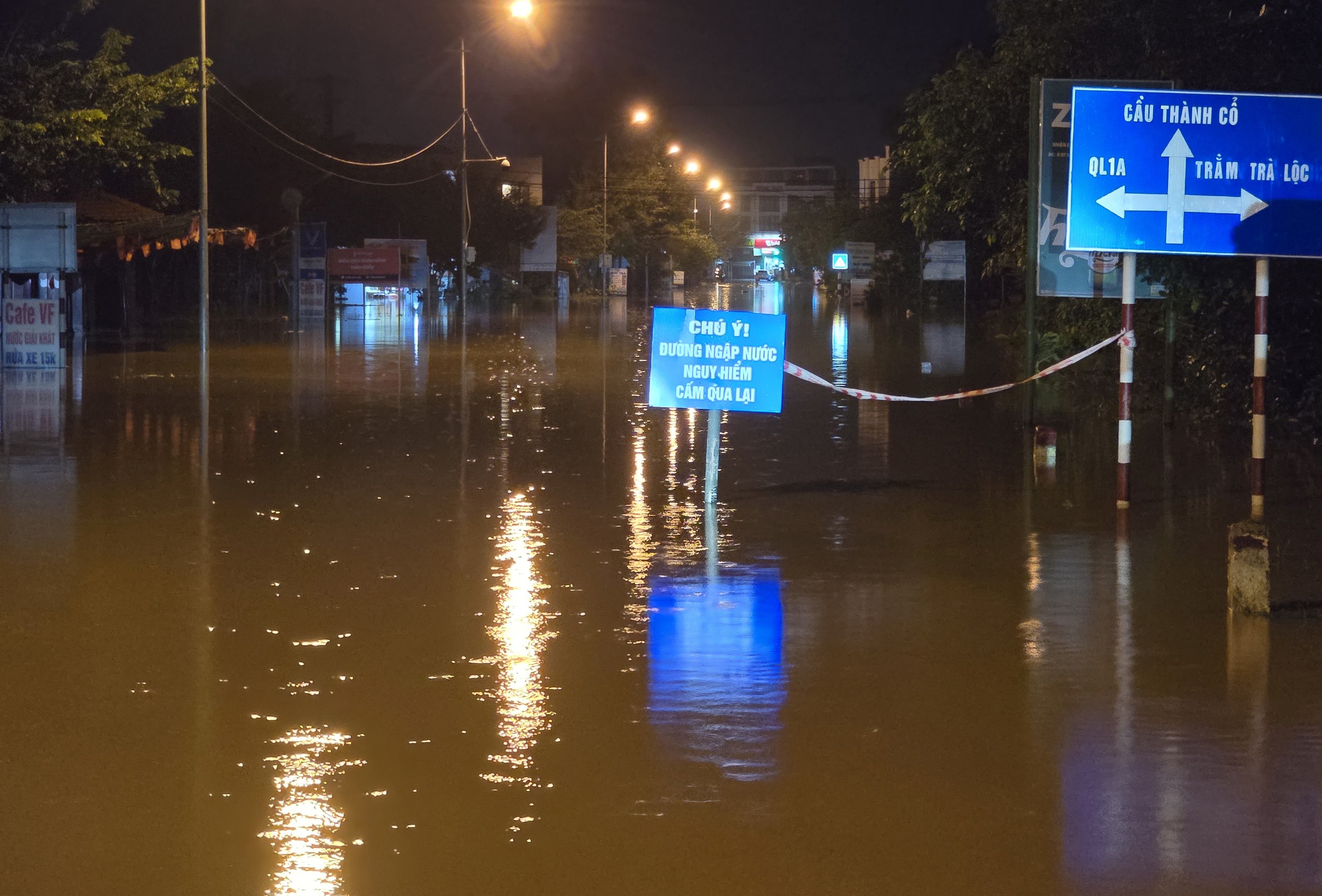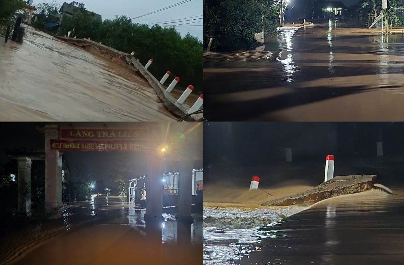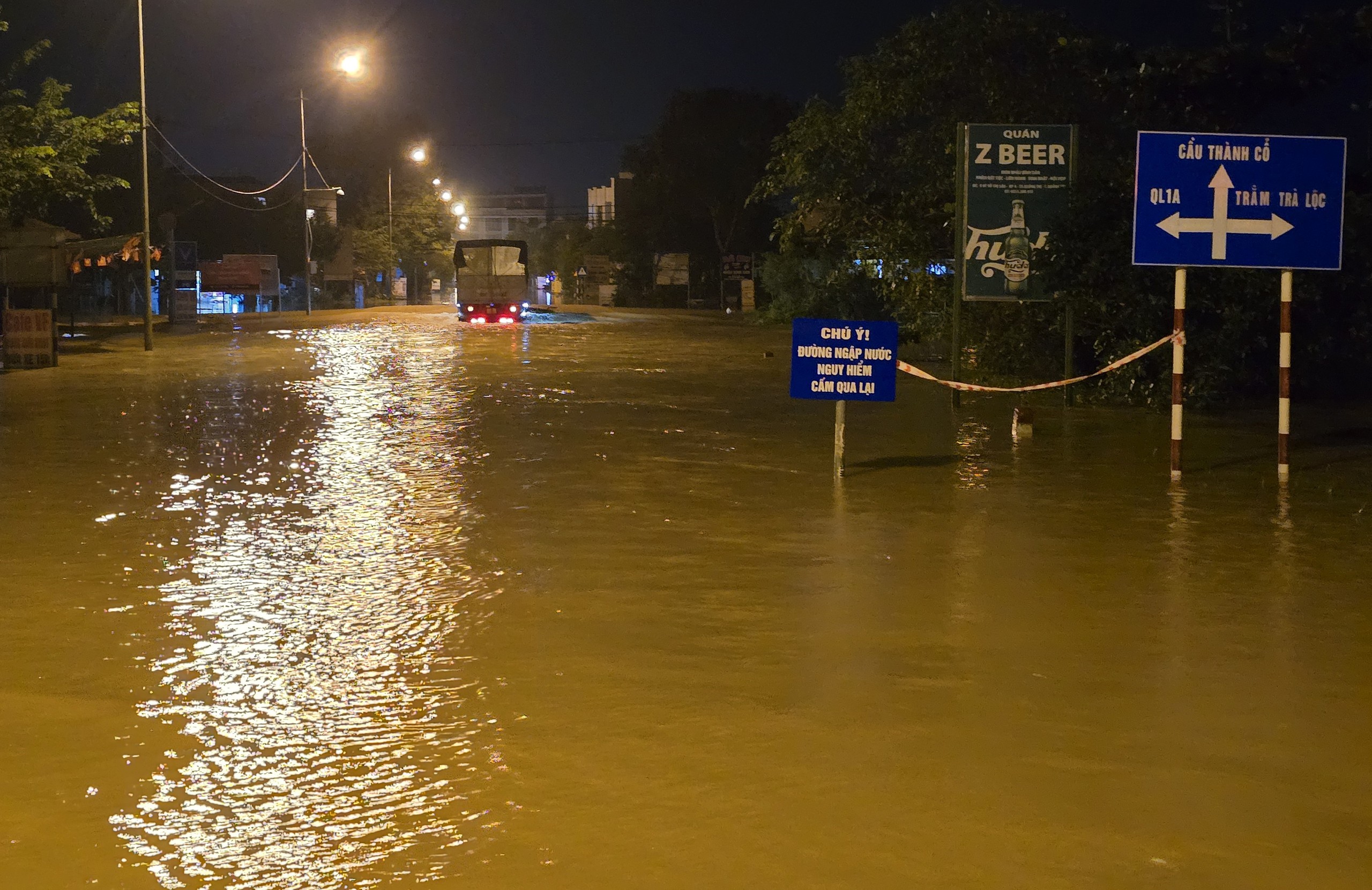 Ghi nhận của PV Báo Xây dựng tối 17/11, tuyến tránh quốc lộ 1 đoạn qua thị xã Quảng Trị (nay là phường Quảng Trị, tỉnh Quảng Trị) đoạn từ cầu Thành Cổ bắc qua sông Thạch Hãn đến gần cầu Kênh bắc qua kênh thủy lợi Nam Thạch Hãn đang bị ngập sâu. Trên đoạn này, nhiều người dân bì bõm lội lụt, xe chết máy phải dắt bộ.