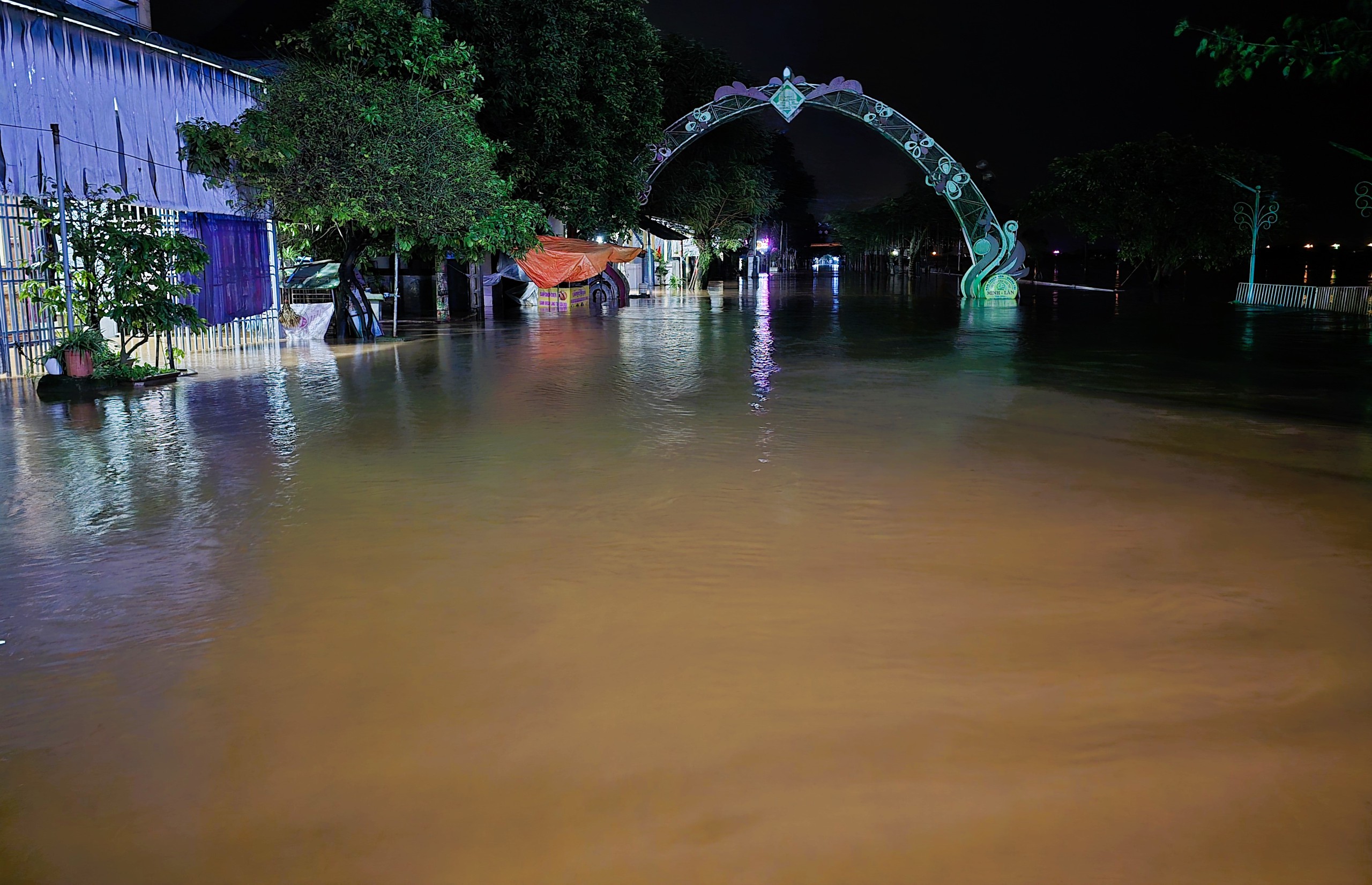 Nhiều nhà hàng, quán kinh doanh tại khu vực này cũng đang bị ngập sâu.