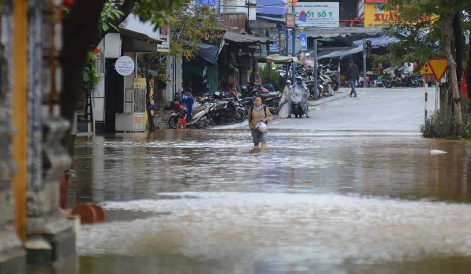 Nước lũ dâng cao lần thứ 4 khiến cuộc sống người dân Huế bị đảo lộn. (Ảnh: Văn Dũng/TTXVN)