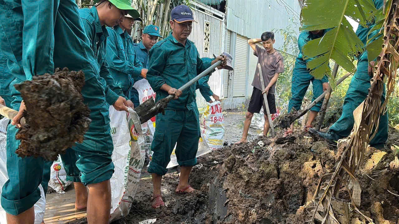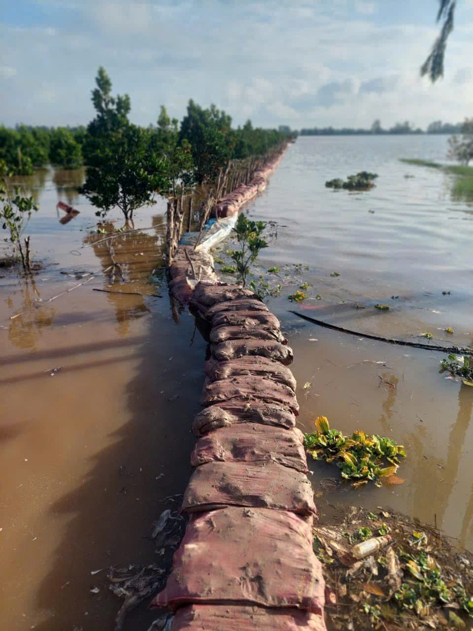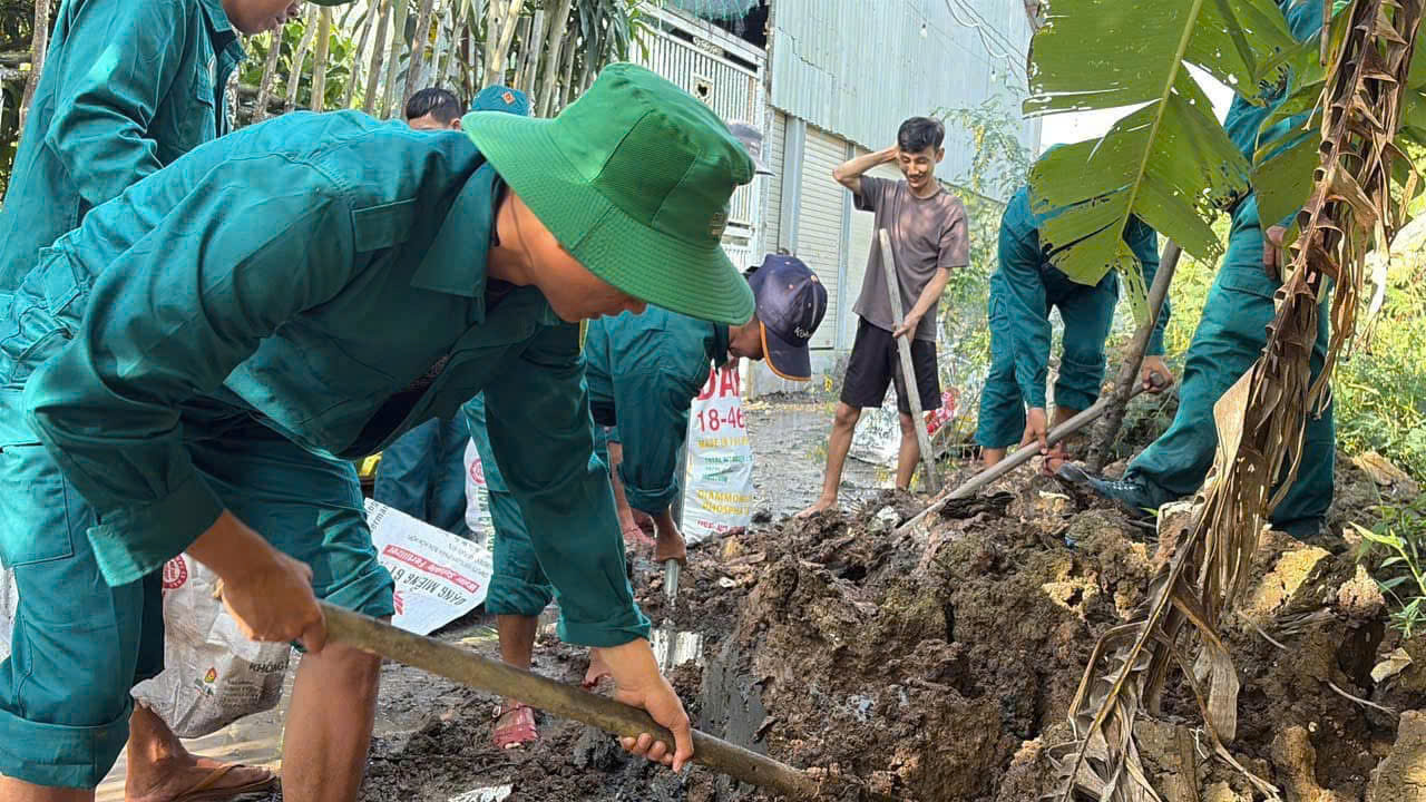 Trước tình hình đó, Ban Chỉ huy quân sự xã Vĩnh Châu và Vĩnh Thạnh đã phối hợp với công an, đoàn viên thanh niên và người dân kịp thời tổ chức đắp, gia cố hệ thống đê bao tại những khu vực trọng điểm.