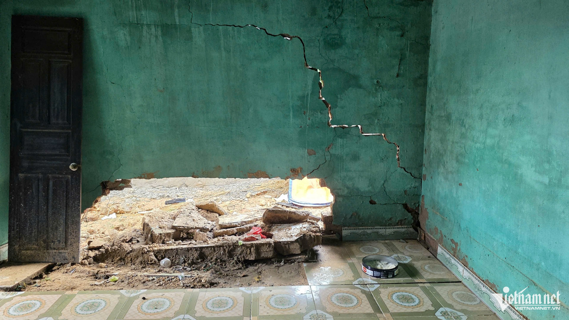 Chân tường khu vực bếp của gia đình ông Ba bị hư hại.