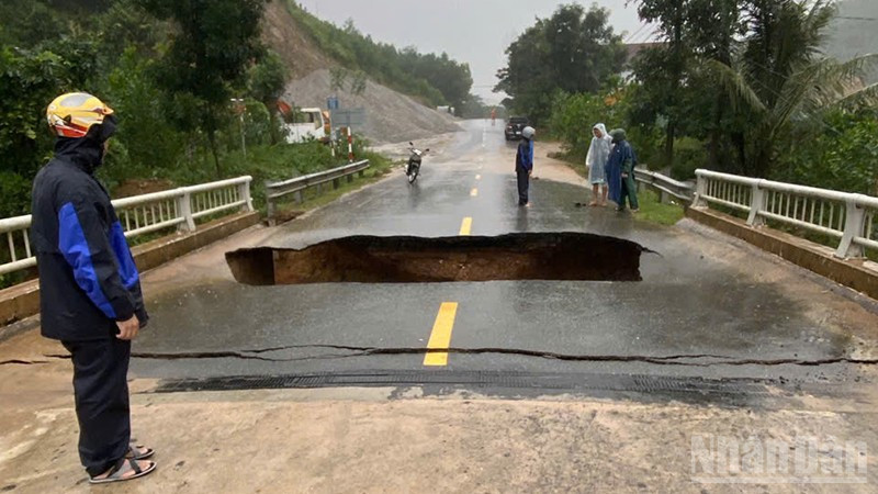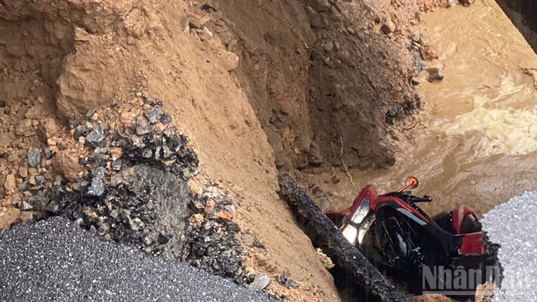 Theo đó, vào khoảng 15 giờ cùng ngày, nước lũ từ thượng nguồn đổ về đã gây sạt lở mố cầu Ca Da tại Km85+095. Vụ sạt lở đã làm hư hỏng gần như hoàn toàn mặt đường, tạo thành một hố có chiều sâu rất nguy hiểm.
