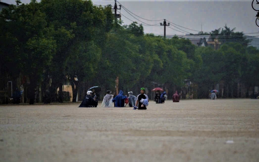 Mưa lớn kéo dài từ ngày 26 - 27/10, khiến nhiều khu dân cư thấp trũng cho đến đô thị trên địa bàn TP Huế đều ngập sâu trong nước.