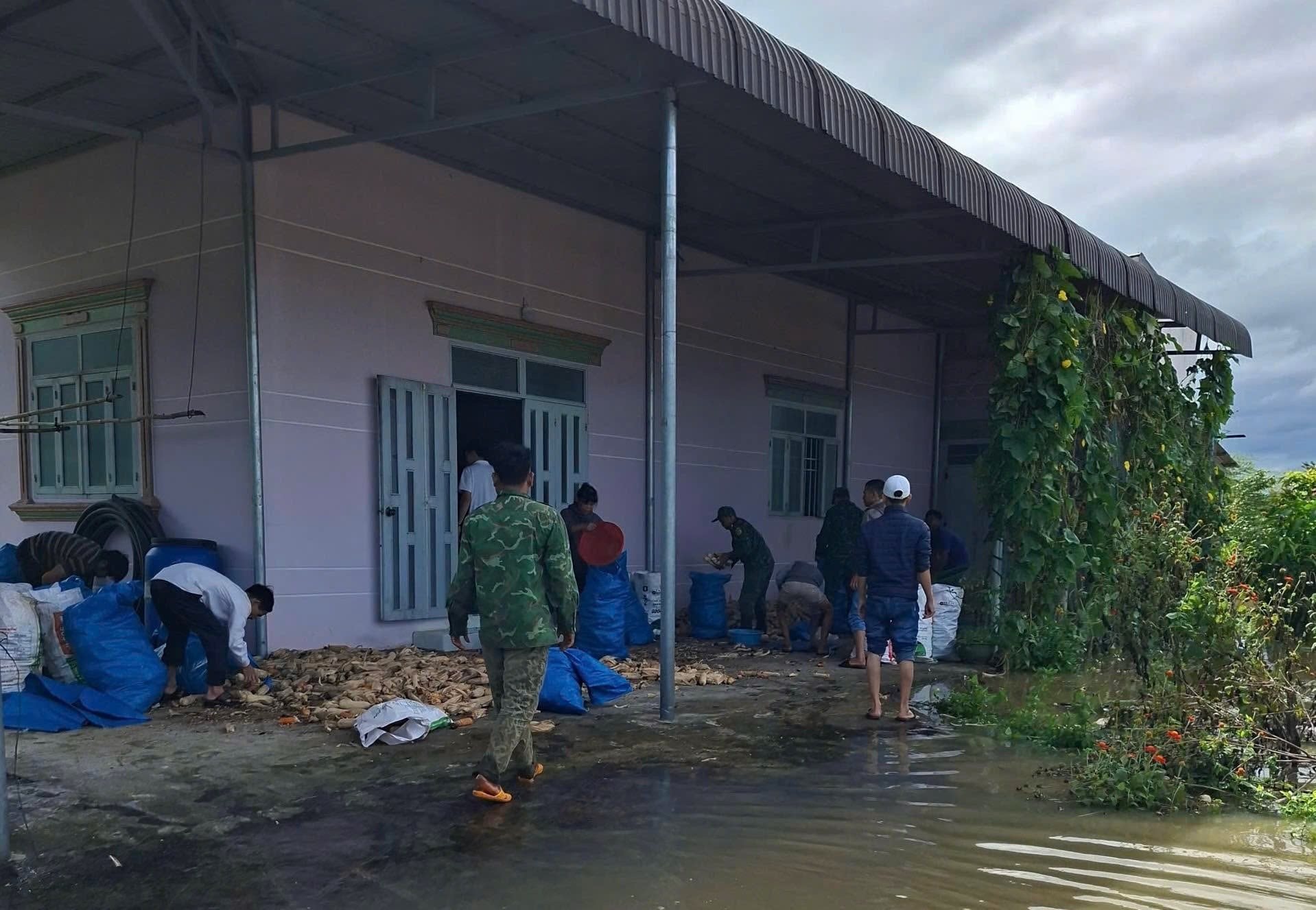 Trong sáng 23/11, nước lũ tiếp tục dâng cao, khiến nhiều khu vực trên địa bàn của xã biên giới Buôn Đôn, tỉnh Đắk Lắk bị ngập nặng, trong đó nhiều hộ nằm ở vùng trũng thấp, bị ngập sâu từ 3 đến 4 mét, nước dâng lút mái nhà, hàng quán.
