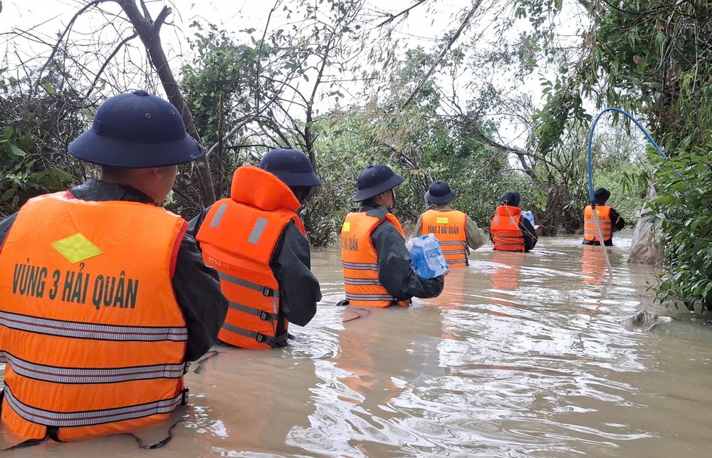 Các chiến sĩ Trạm 555 và 3512 (Vùng 3 Hải quân) đến hỗ trợ người dân tại tổ 8, khu vực 2, phường Quy Nhơn Bắc, tỉnh Gia Lai