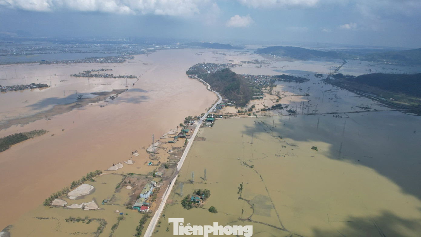 Quốc lộ 1A nước rút dần, nhưng hai bên vẫn ngập sâu. Một số tuyến đường vào khu dân cư, nước vẫn chưa rút hết, giao thông bị chia cắt.