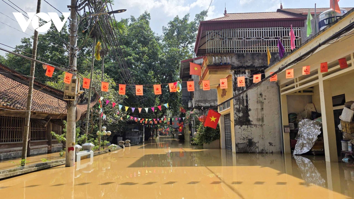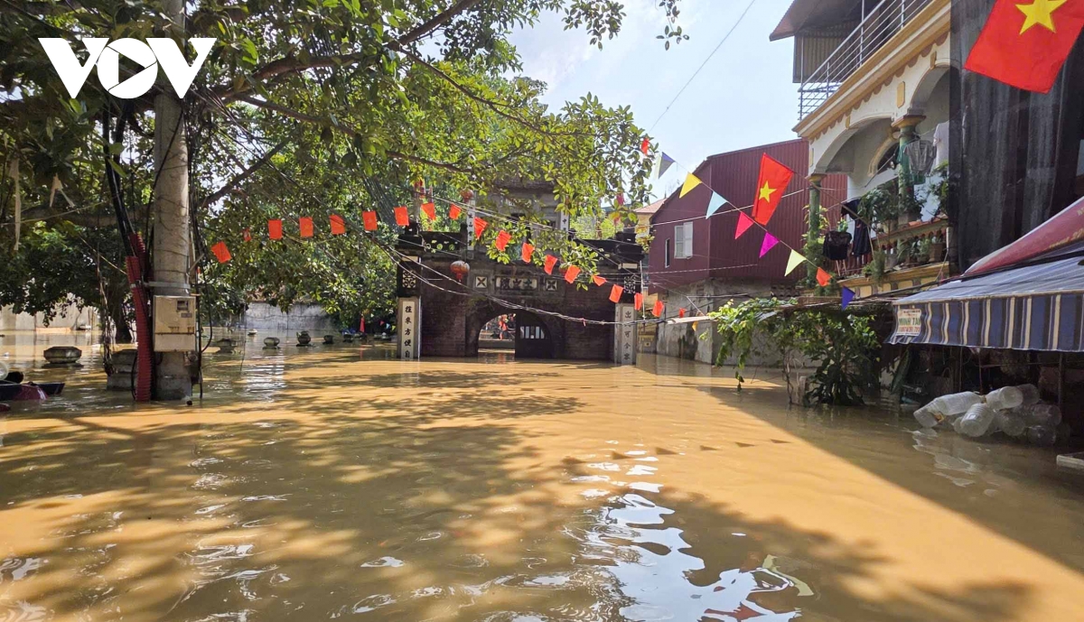 Nước ngập sâu trong các ngõ xóm của Thổ Hà