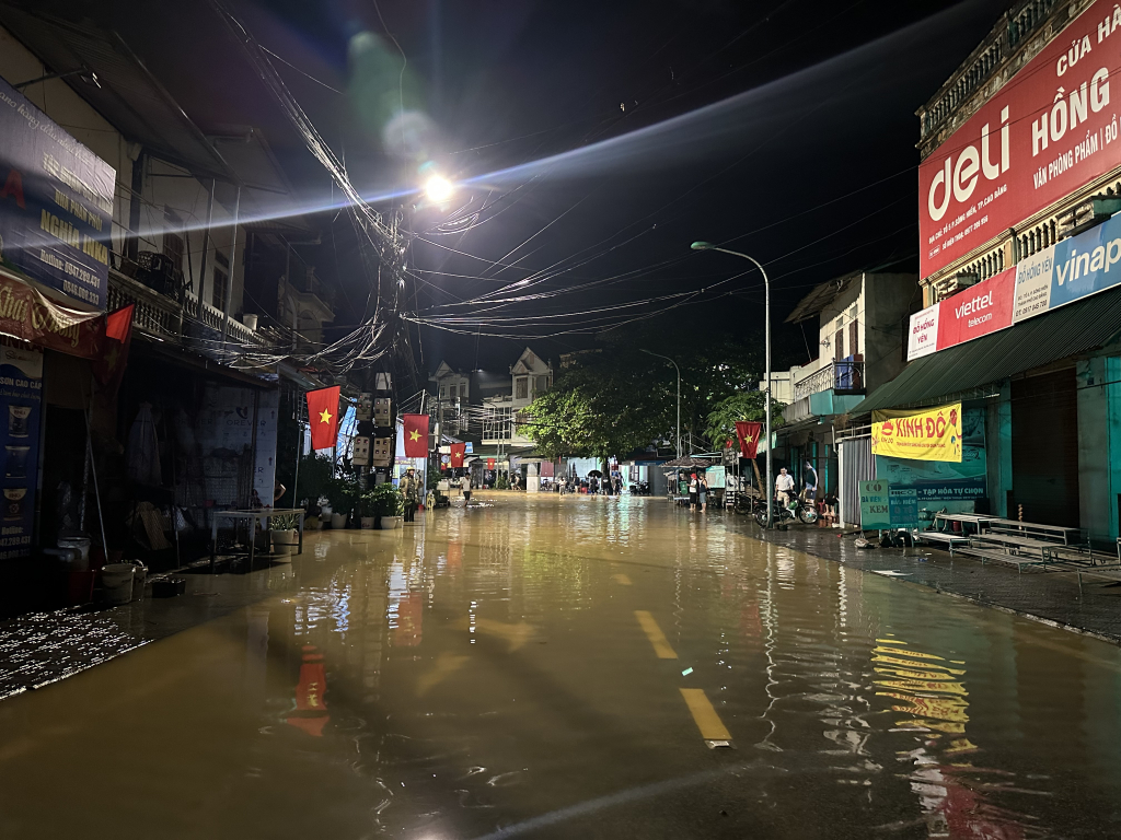 Ghi nhanh vào lúc 23h đêm 30/9 các tuyến phố chính (Phường Hợp Giang cũ) Phố Cũ, Phố Hiến Giang – khu vực Cầu Ngầm 2, Phố Kim Đồng, Phố Vườn Cam nước sông dâng lên cao. Có điểm ngập sâu từ 1 đến 1,5m so với mặt đường.