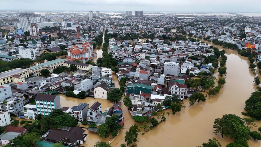 Một góc đô thị Huế sáng 28/10 vẫn chìm trong biển nước