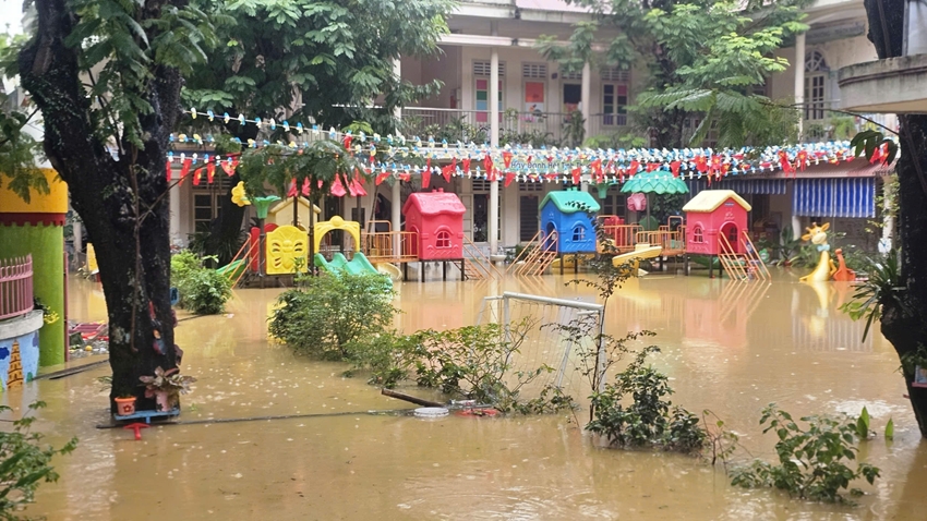 Trường mầm non Tây Lộc (phường Phú Xuân) vẫn ngập sâu khoảng 1,2m