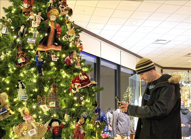 Một người dân chụp ảnh cây thông Noel. Ảnh: Ngọc Quang/PV TTXVN tại Mỹ