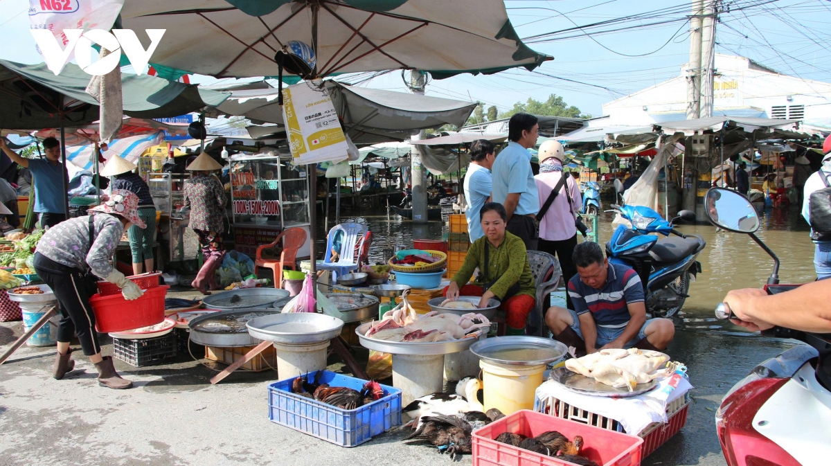 Chợ Huỳnh Hữu Nghĩa (xã Mỹ Tú, TP. Cần Thơ) bị ngập thời gian dài
