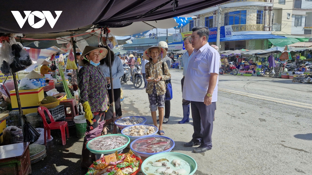 Lãnh đạo xã Mỹ Tú xuống thăm hỏi, vận động tiểu thương vượt qua khó khăn, bảo đảm an toàn, giao thông đi lại trong thời gian di chuyển ra nơi khô ráo buôn bán tạm