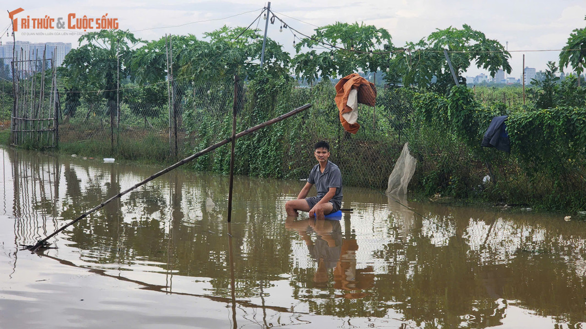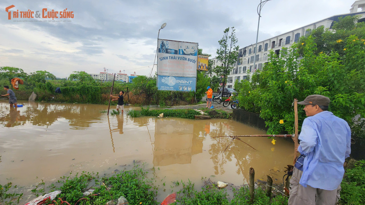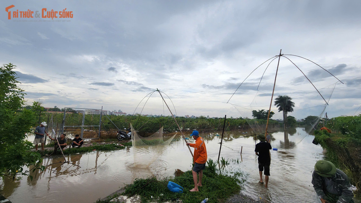 Sáng 1/10, trong khu đô thị Hinode Royal Park (xã Hoài Đức, Hà Nội), khá đông người dân chuẩn bị vó lưới, cần câu để bắt cá tại các vũng nước sâu, nhất là khu vực gần sát các hồ cá.