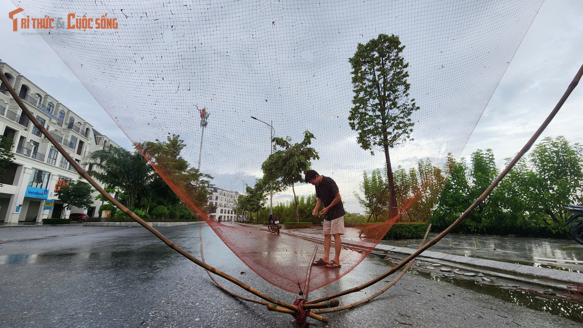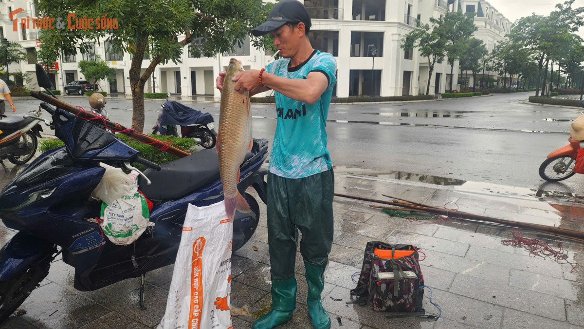 Người đàn ông may mắn bắt được cá trôi khá to. Anh cho biết sẽ mang về nhà ăn cùng gia đình trong thời tiết mưa gió, thay vì mang đi bán.