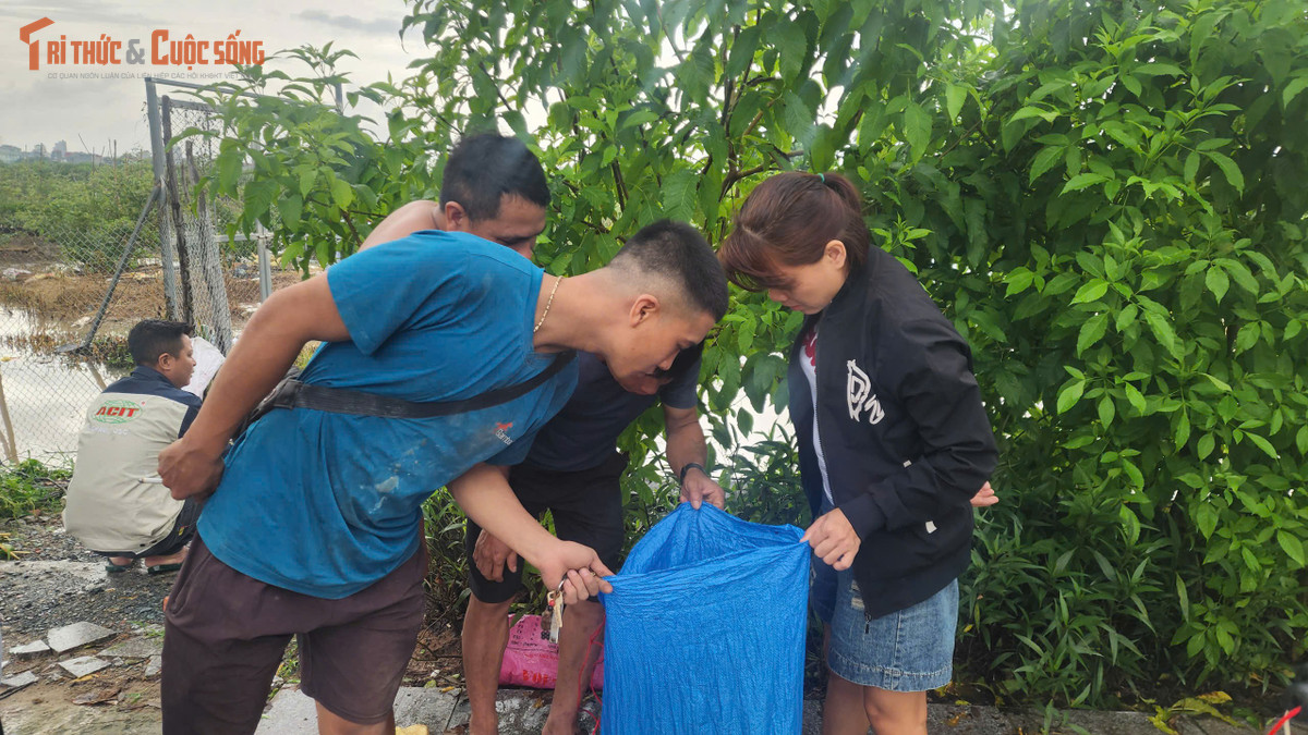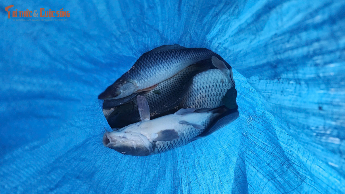 Bao tải là nơi chứa thành quả của người dân sau nhiều giờ bắt cá.