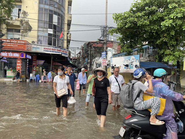Mặc dù bão số 10 đã tan, nhưng theo ghi nhận của PV vào sáng 10/2, trên địa bàn TP. Hà Nội tình trạng ngập úng vẫn còn diễn ra ở nhiều tuyến phố như Phùng Hưng (Hà Đông), Tây Mỗ, Đại lộ Thăng Long (Từ Liêm), đường 70 khu vực Bệnh viện K cơ sở Tân Triều. Trong ảnh: Người dân di chuyển khó khăn tại đường Phùng Hưng (Hà Đông, Hà Nội).