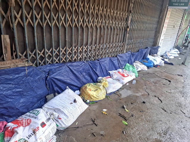 Những bao cát chắn nước vào nhà chưa được dọn.