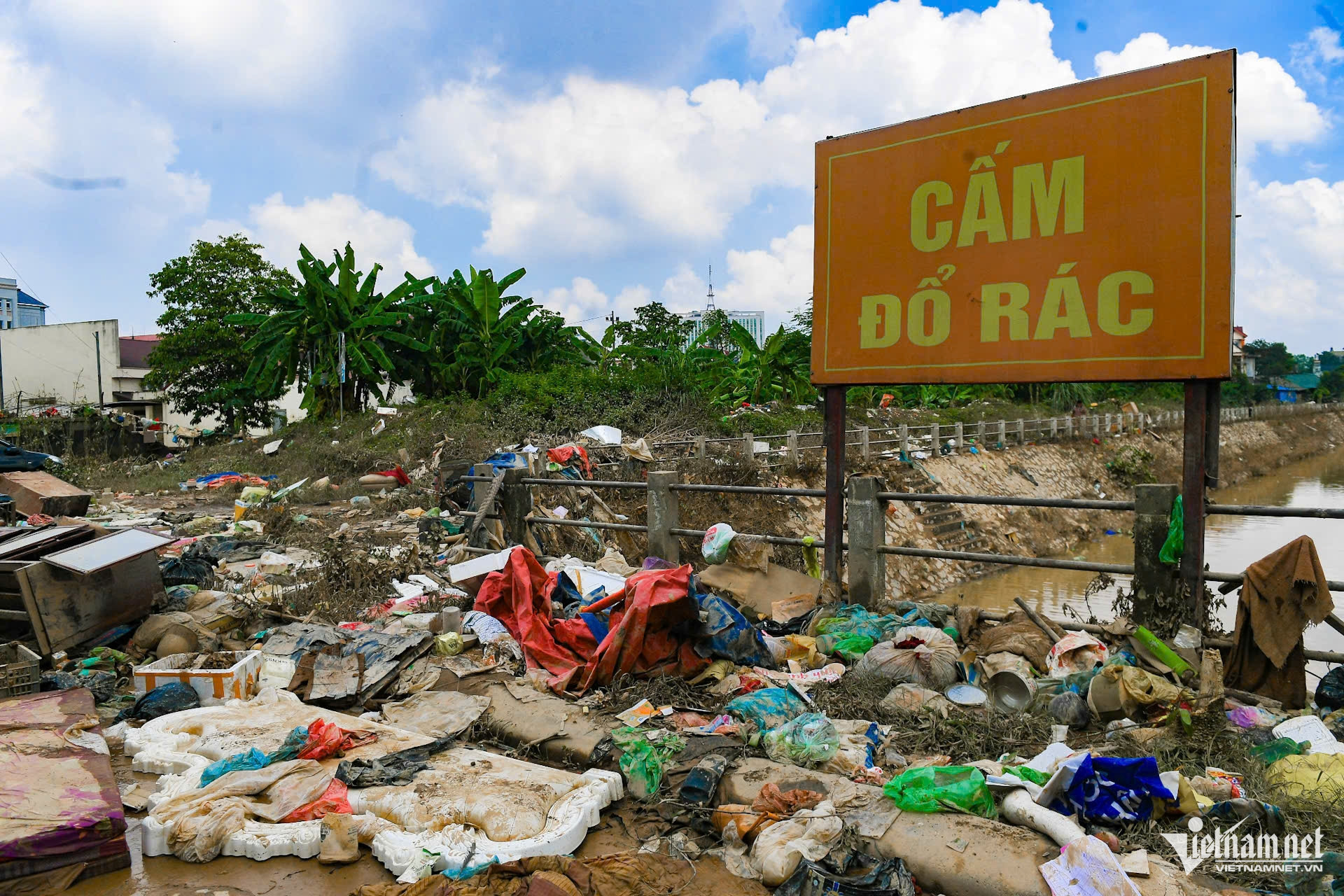 Nhiều bãi đất trống cạnh các cụm dân cư chất kín rác thải. 12h, người dân tiếp tục dọn dẹp. Ông Trần Đình Quang (người dân) cho biết, toàn bộ vật dụng dưới tầng 1 của gia đình bao gồm: tủ gỗ, ti vi, bàn ghế... đã ngâm nước 3 ngày và hư hỏng hết nên phải vứt bỏ.