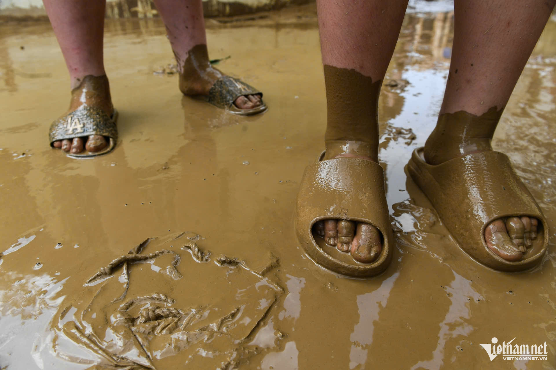 Nước rút, bùn đất vẫn đầy đường, phủ kín mọi con ngõ khiến việc di chuyển rất khó khăn.