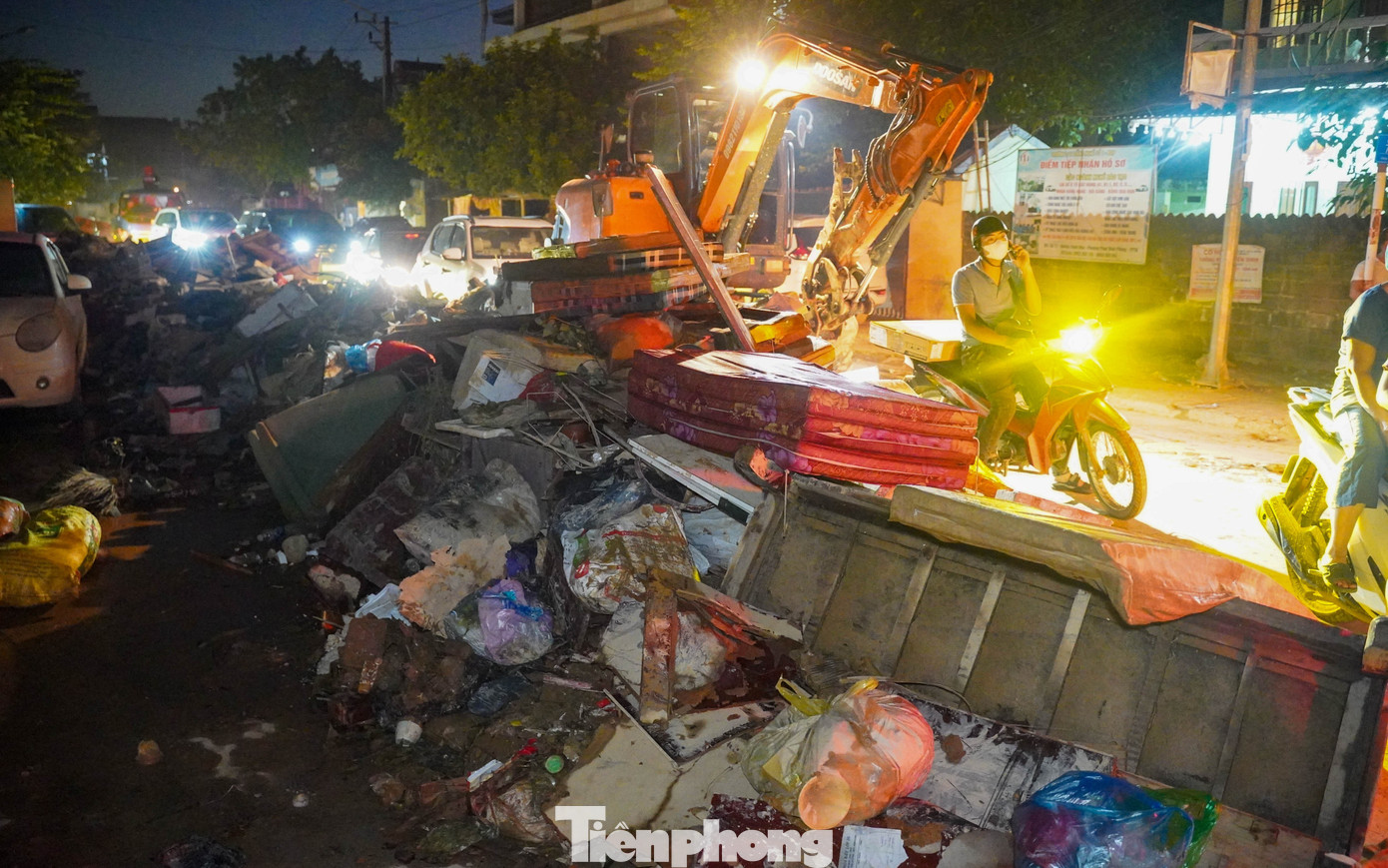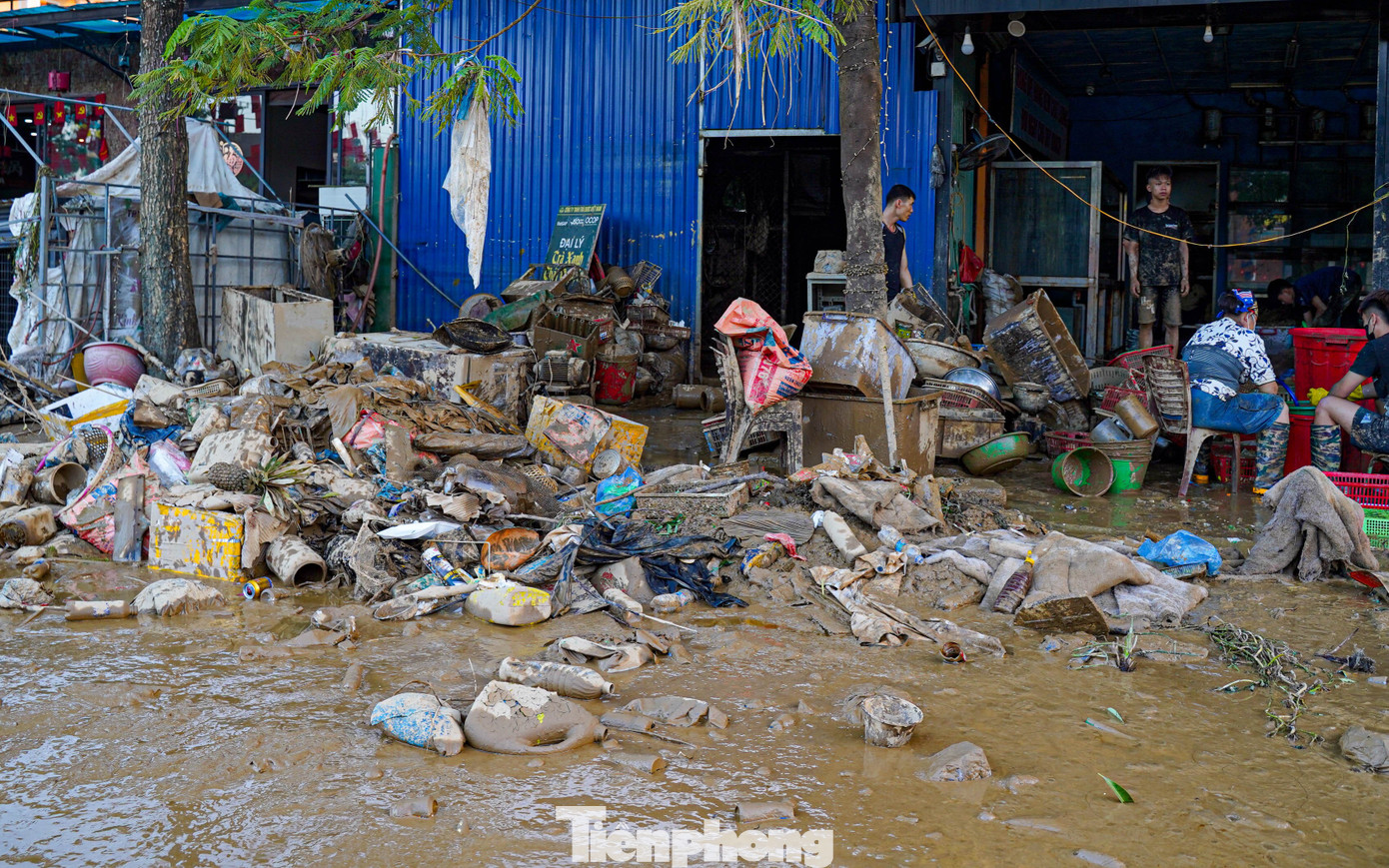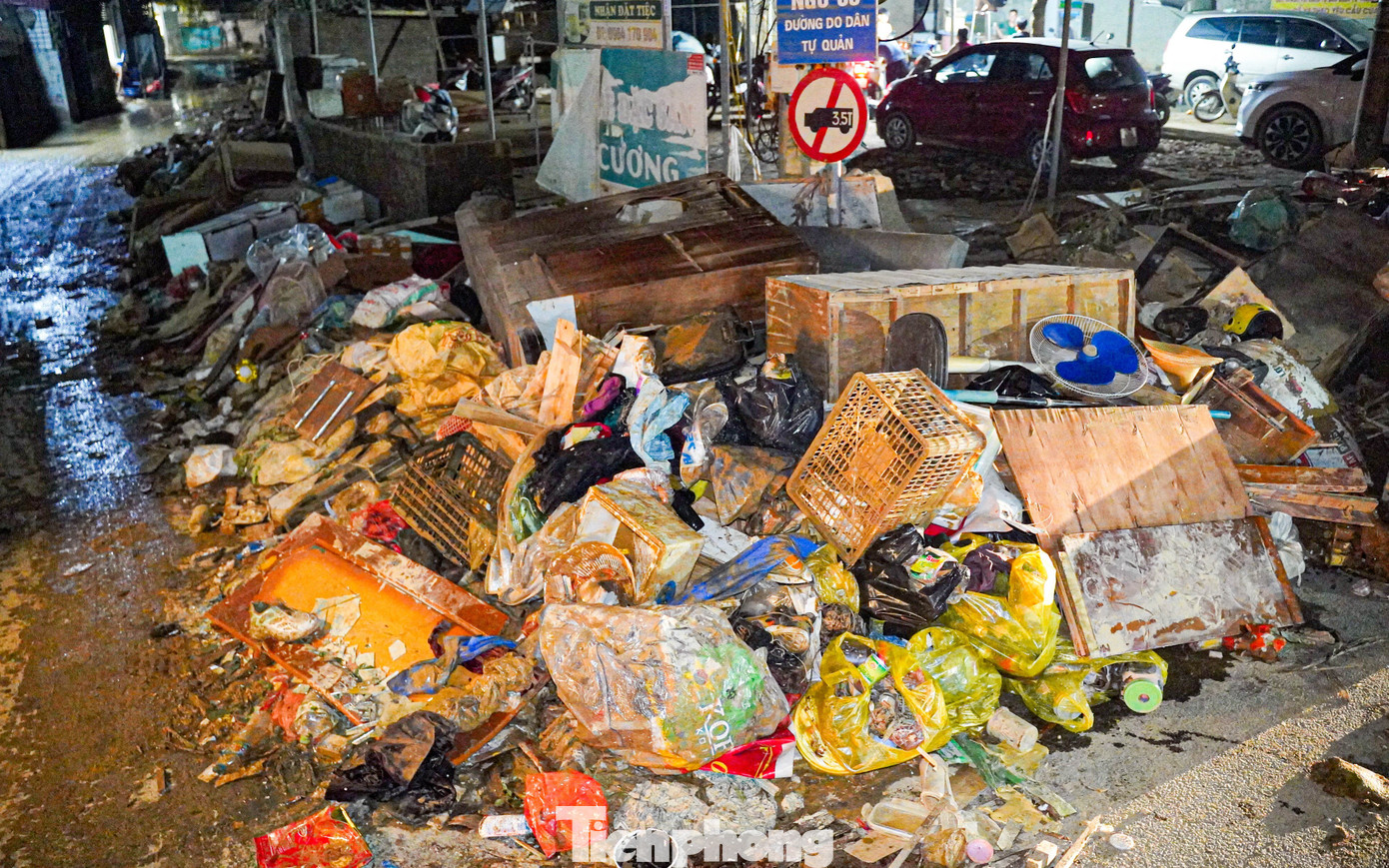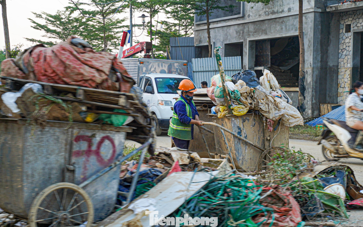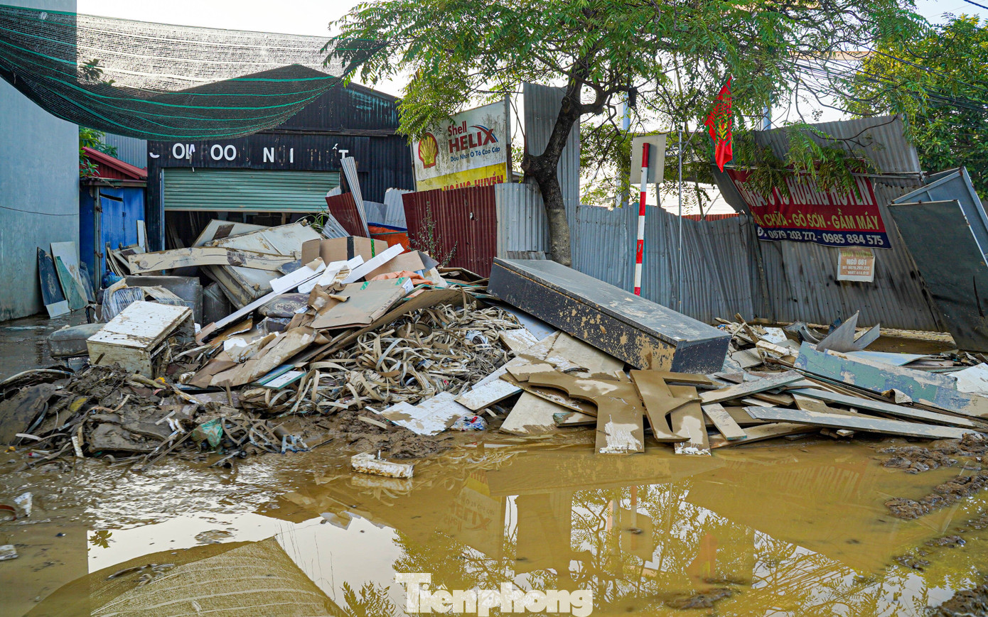 Theo người dân, ngay khi nước bắt đầu rút, các hộ gia đình đồng loạt thu dọn nhà cửa. Nhiều đồ đạc, hàng hóa bị hư hỏng được chất thành từng đống lớn trước cửa nhà hoặc ven đường.