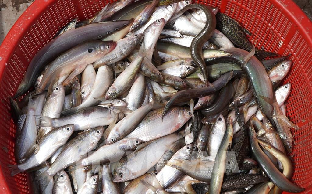 Hiện nay, nước lũ đang rút nhanh, các cánh đồng được tháo nước ra để nông dân làm đất, chuẩn bị xuống giống vụ lúa Đông Xuân. Theo dòng nước, nhiều loại thủy sản từ đồng ruộng bơi ra các nhánh sông. Người dân tranh thủ đánh bắt cá cải thiện bữa ăn, đồng thời tiêu thụ để có thêm thu nhập.