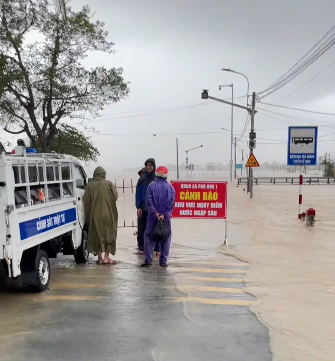Trung tâm phường Tuy Hòa nước ngập, giao thông tê liệt.