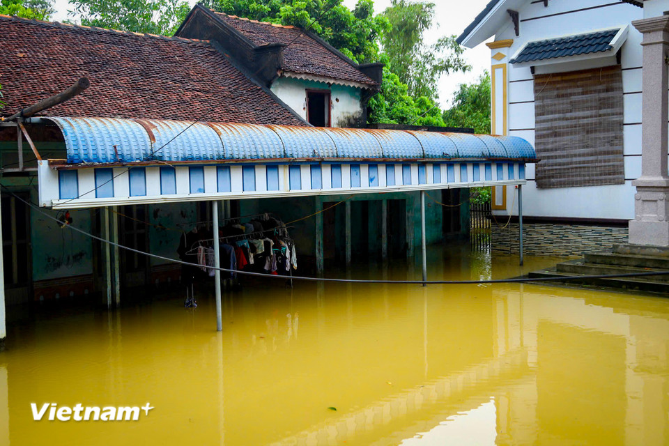 Cùng chung cảnh ngộ, người dân xóm Đồng Dâu (xã Quảng Bị) cũng bị "bao vây" bởi nước. (Ảnh: Hoài Nam/Vietnam+)