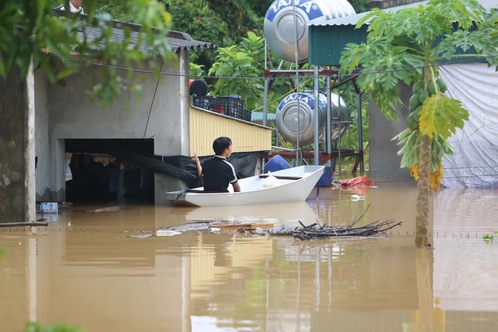 Đến sáng 1-10, nước sông Bưởi vẫn dâng cao trên mức báo động 3 và rút chậm khiến vùng đất này bị ngâm trong nước từ ngày 29-9