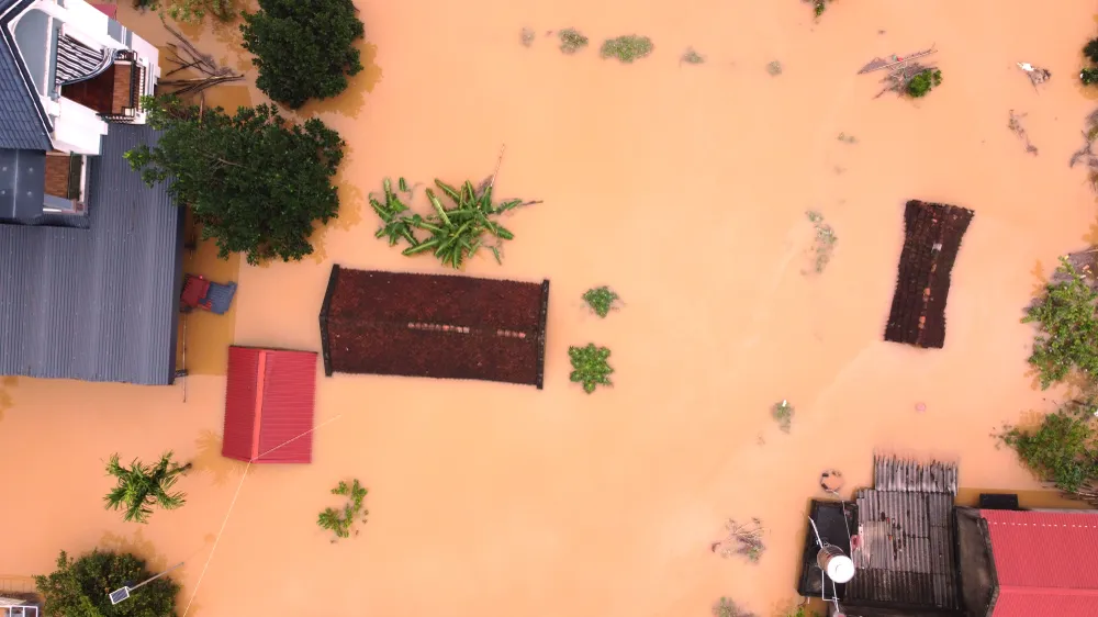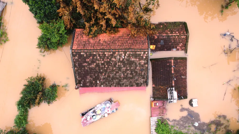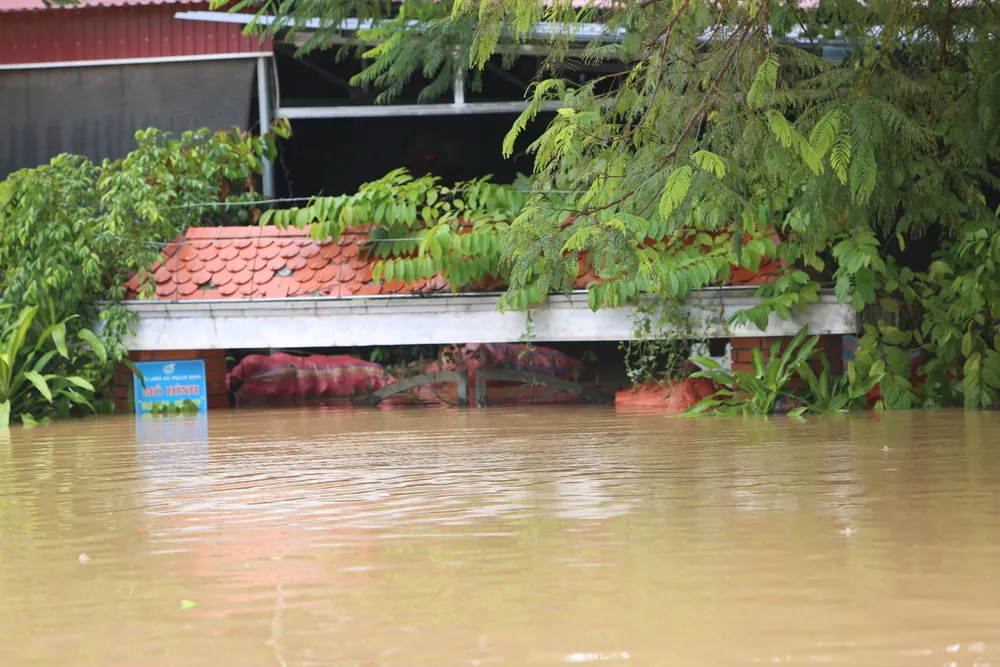 Một người dân kể lại: Nước lũ lên nhanh từ chiều 29-9, nhiều ngôi nhà ngập sâu cả tầng 1, những ngôi nhà mái ngói gần như chỉ còn lại nóc nhà.