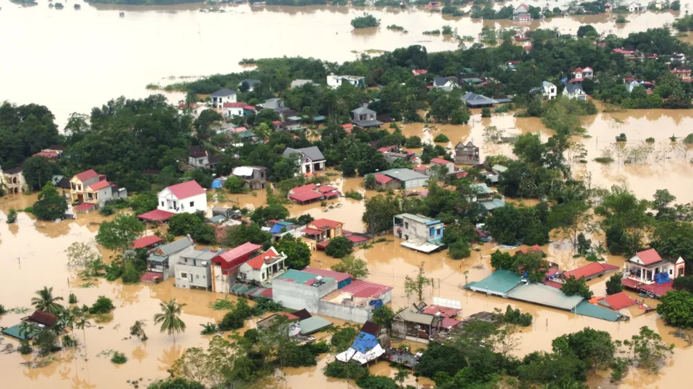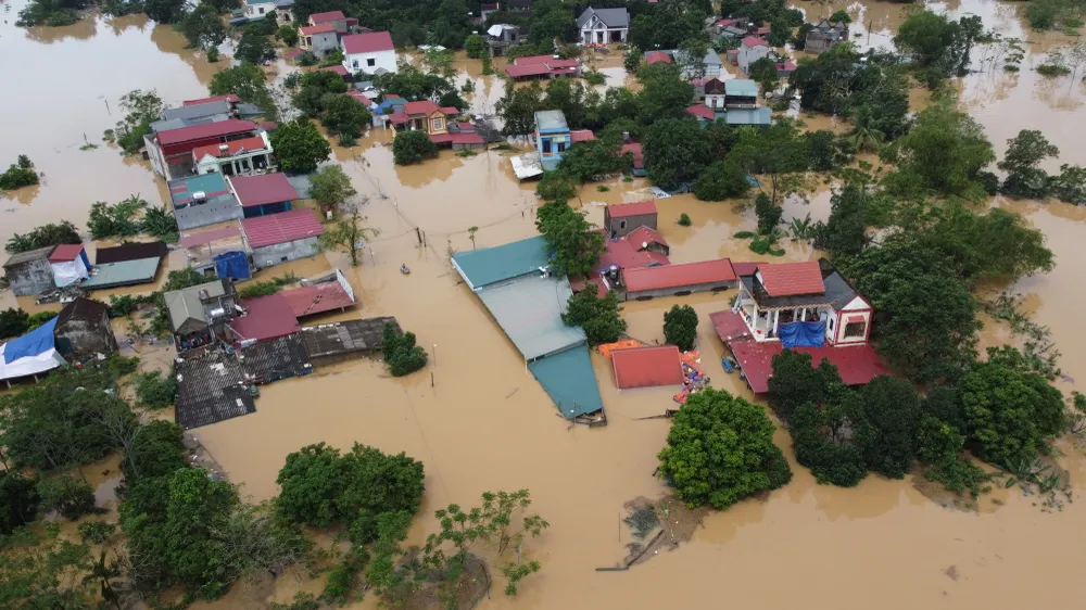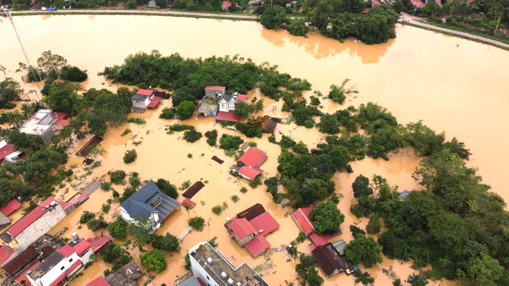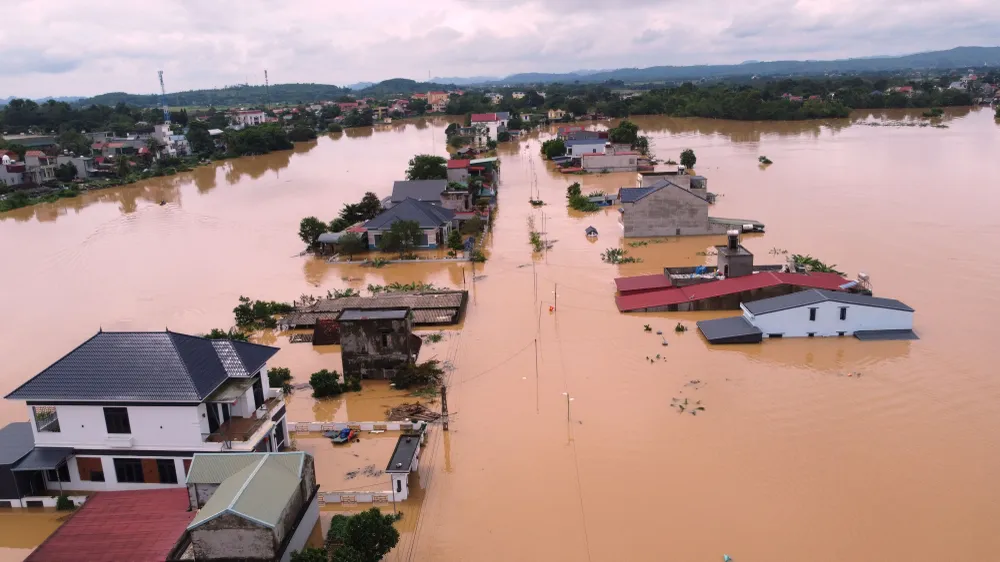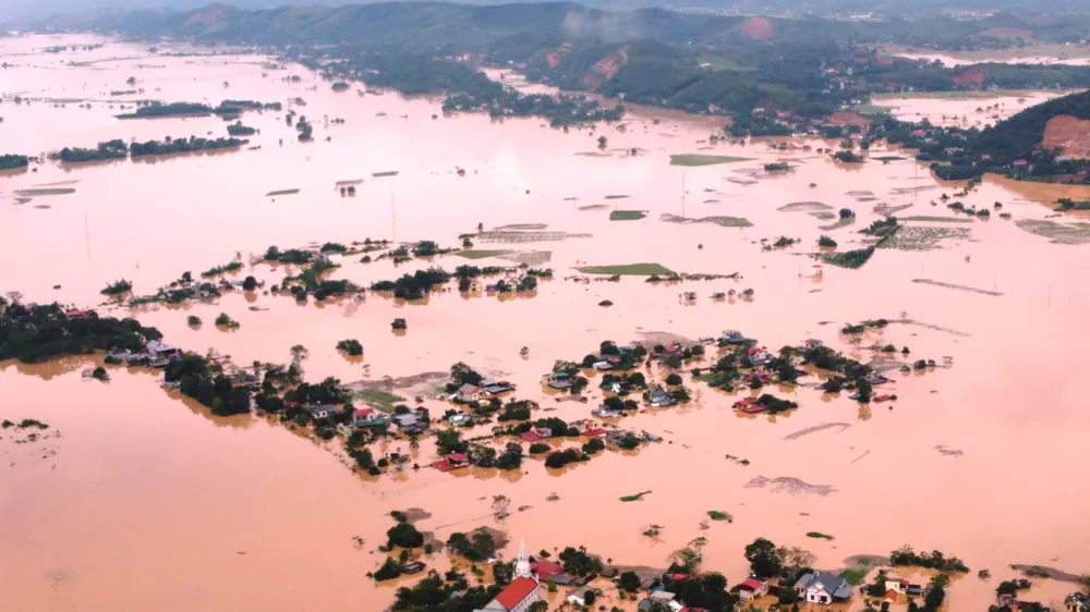 Ghi nhận của PLO, cả một vùng đất rộng lớn xã Kim Tân, tỉnh Thanh Hóa bị nhấn chìm giữa nước lũ mênh mông.