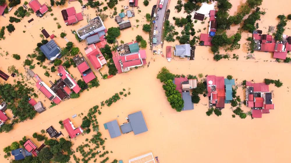 Nhìn từ trên cao là những ngôi cô lập hoàn toàn với bên ngoài, cuộc sống của người dân bị đảo lộn, khó khăn tứ bề.