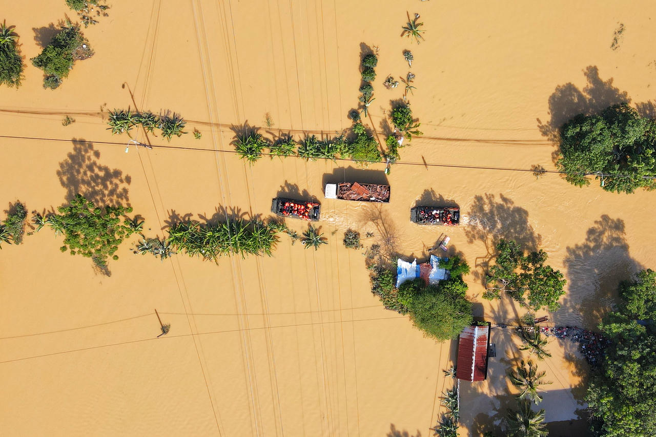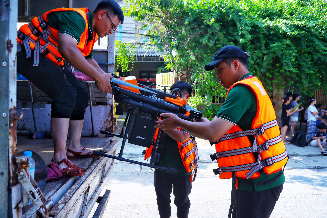 Lực lượng chức năng sử dụng drone để tìm kiếm các vị trí nguy hiểm để kịp thời giải cứu.