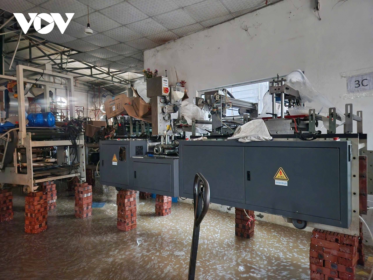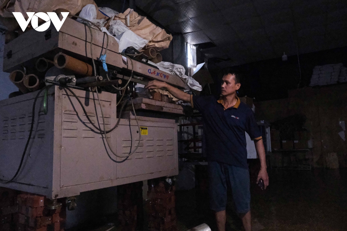 Máy móc sản xuất văn phòng phẩm cũng được đưa lên cao, nhằm tránh thiệt hại về tài sản không đáng có.