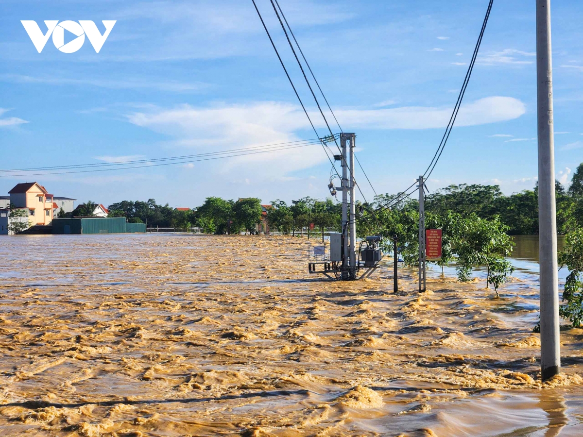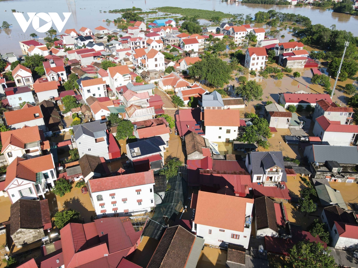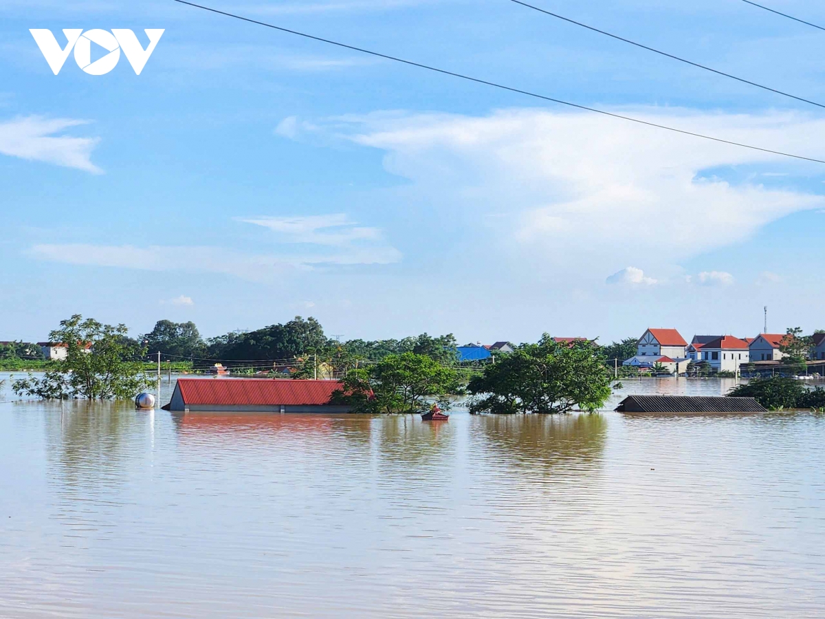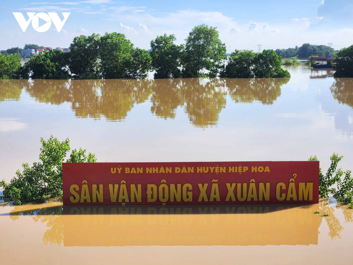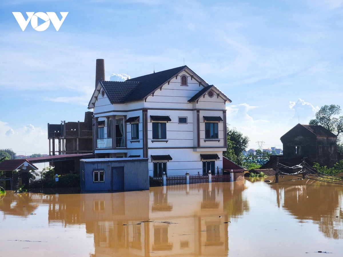 Tại các thôn Ninh Tào, Đồng Đạo (xã Hợp Thịnh), phường Vân Hà..., nhiều ngôi nhà vẫn chìm sâu trong biển nước, khiến giao thông bị chia cắt ở một số khu vực, người dân gặp khó trong công tác tiếp cận nhu yếu phẩm và nước sinh hoạt.
