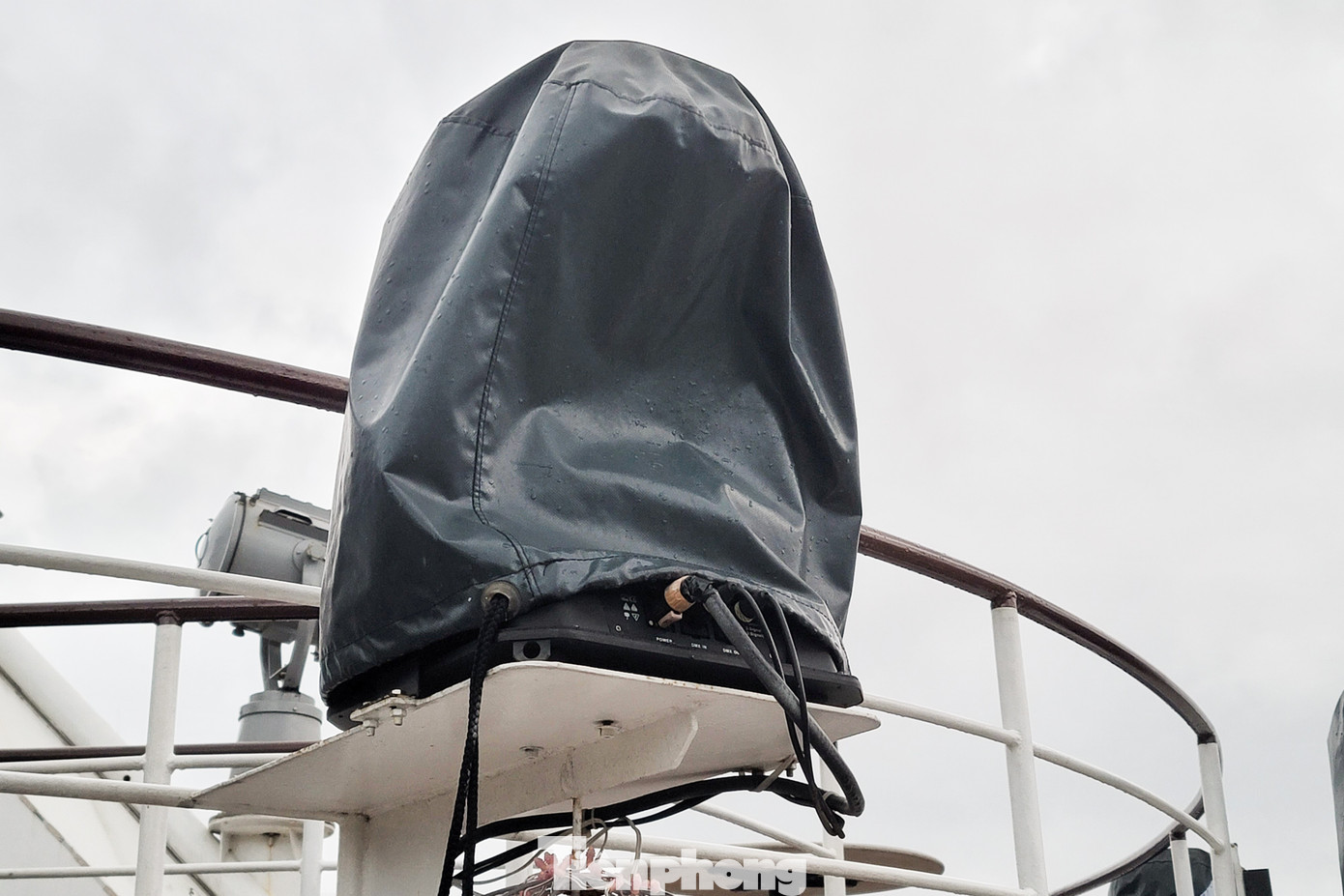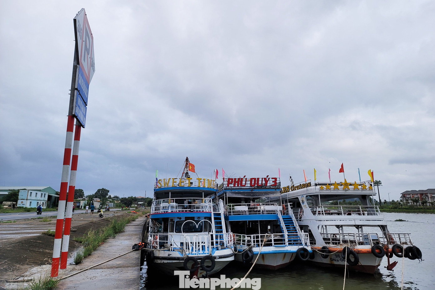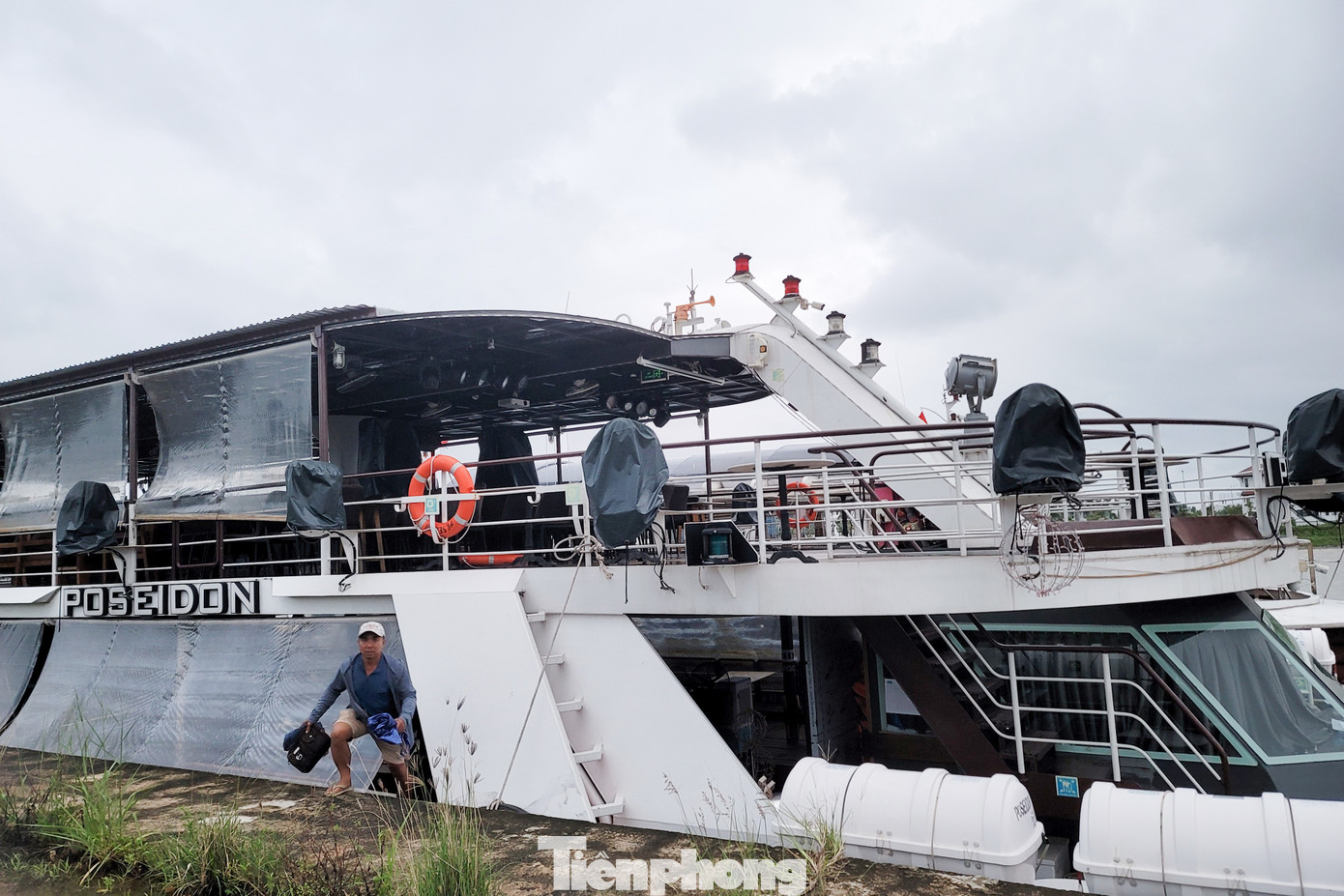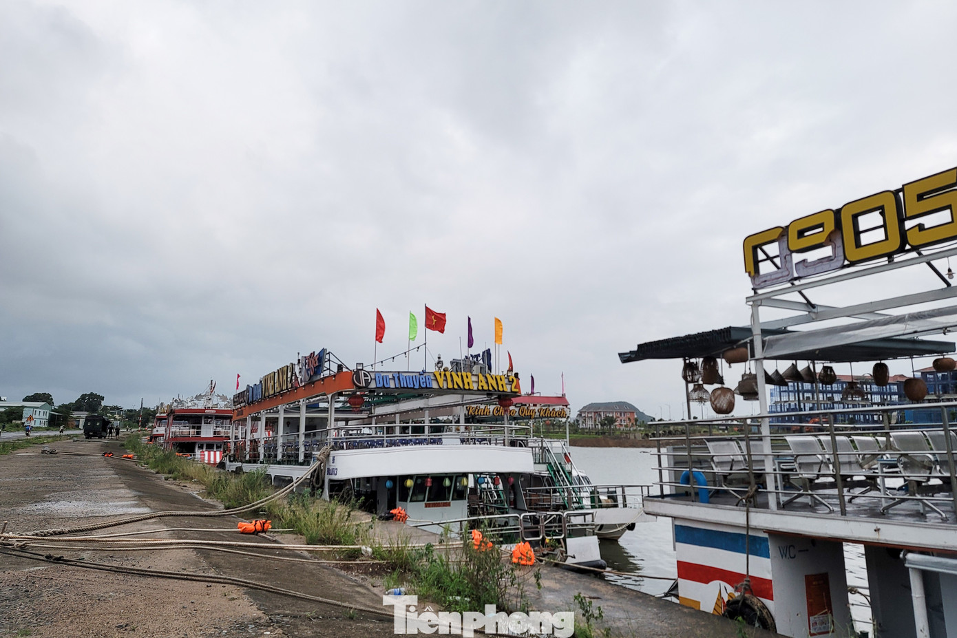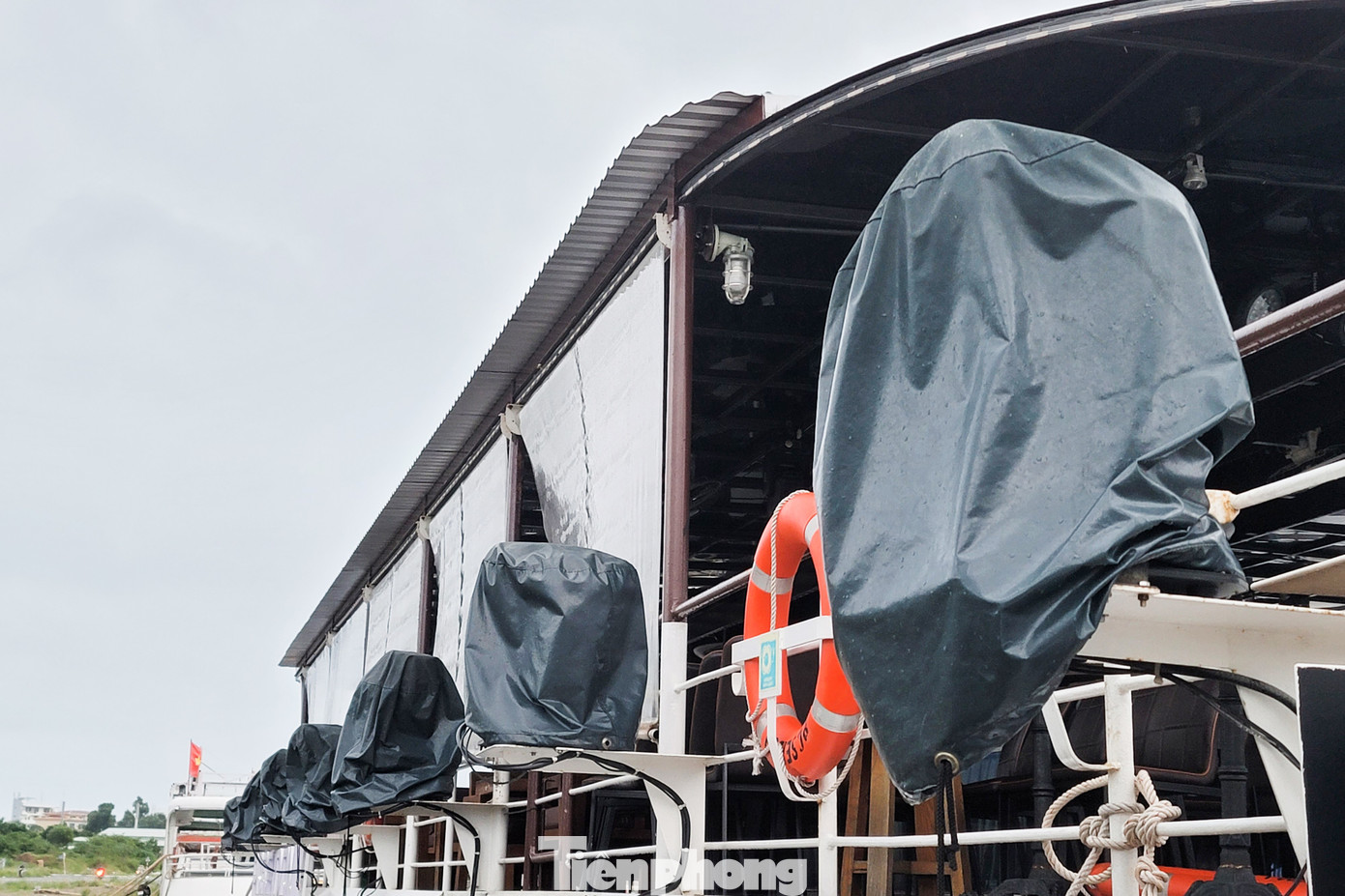 Các du thuyền đậu sát cạnh nhau thành hàng 3, hàng 5, được neo chặt bằng nhiều sợi dây thừng lớn, chắc chắn. Toàn bộ bàn ghế, vật dụng trên thuyền đã được chằng néo, phủ bạt kín để tránh mưa gió.
