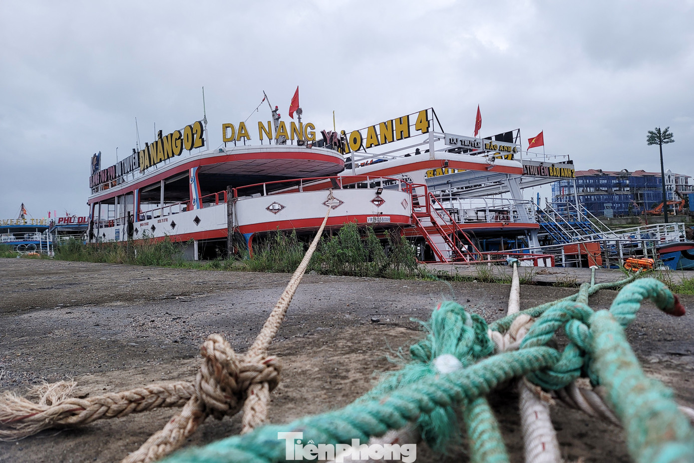 Đây là những du thuyền phục vụ khách tham quan trên sông Hàn. Mỗi chiếc có giá trị từ vài tỷ đến cả chục tỷ đồng, nên mỗi khi có bão, các chủ tàu đều đưa phương tiện về khu vực này để neo đậu an toàn.