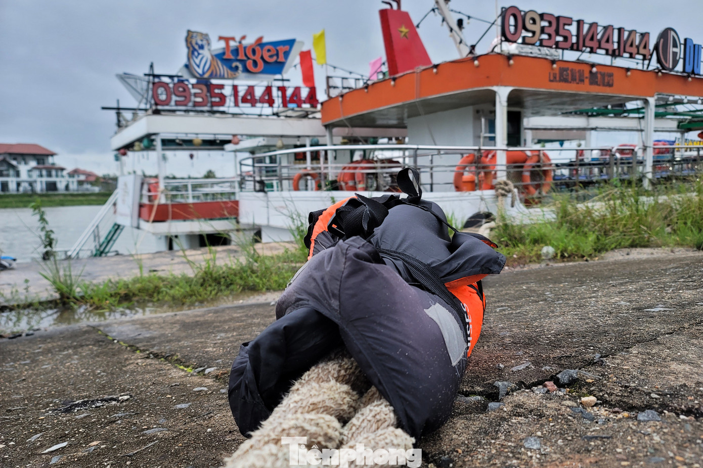 Khoảng 10h trưa nay, các tàu du lịch bắt đầu rời cảng, di chuyển ngược sông Hàn đến khu vực neo đậu an toàn. Trong ảnh, dây neo được quấn phao để giảm ma sát, tránh đứt khi gió giật mạnh lúc bão đổ bộ.